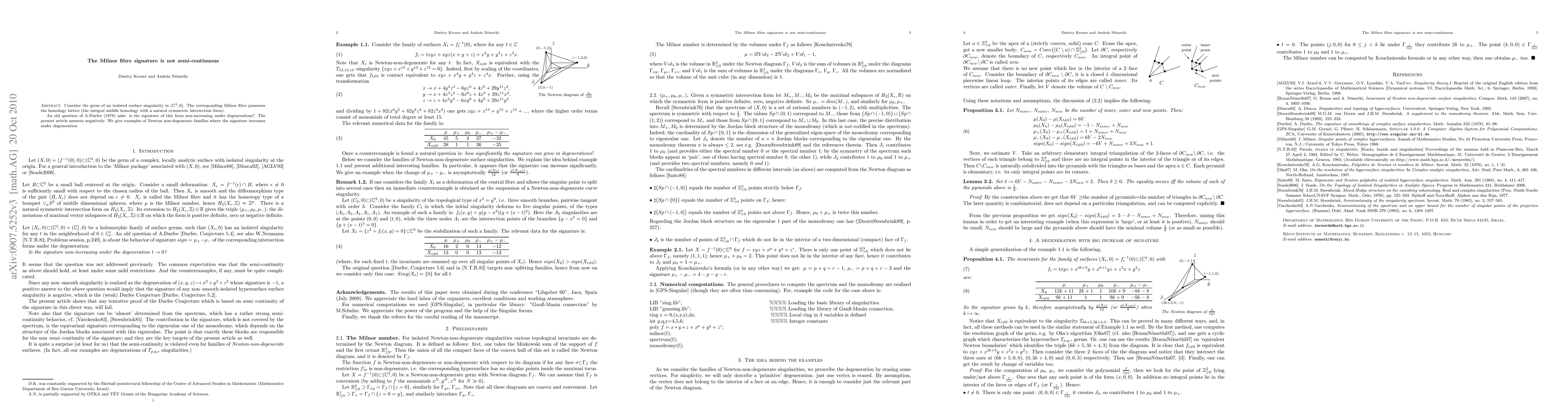 A recent study found that the signature of Milnor fibre form increases under degeneration in certain Newton non-degenerate families, contrary to a long-standing question in singularity theory.