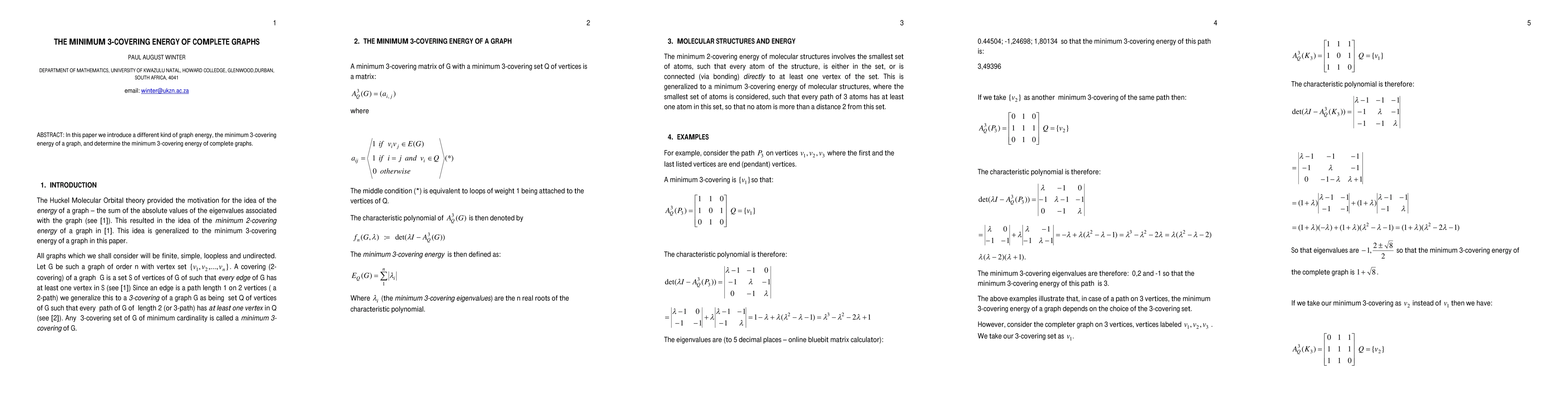 In this paper we introduce a different kind of graph energy, the minimum 3-covering energy of a graph, and determine the minimum 3-covering energy of complete graphs.