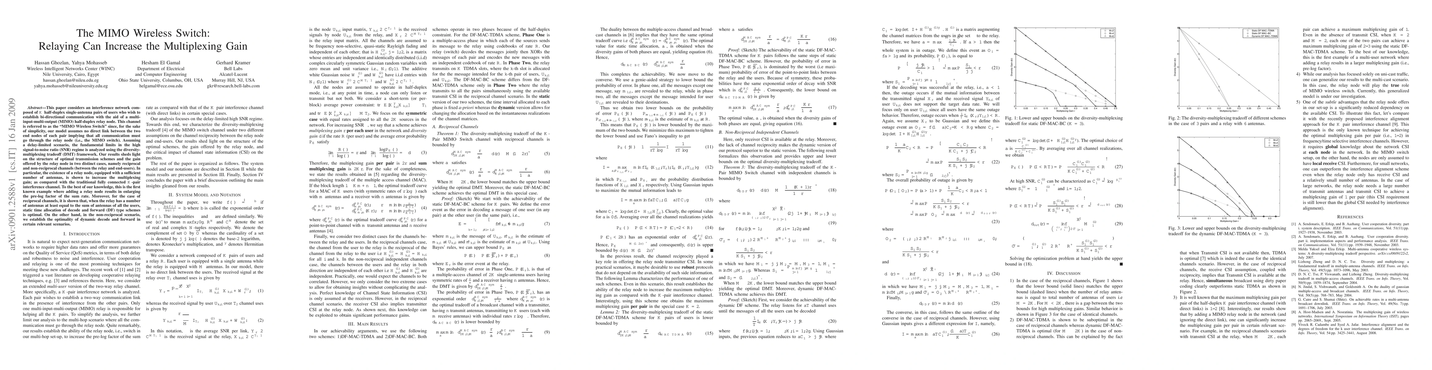 This paper considers an interference network composed of K half-duplex single-antenna pairs of users who wish to establish bi-directional communication with the aid of a multi-input-multi-output (MIMO) half-duplex relay node. This channel is referred to as the "MIMO Wireless Switch" since, for the sake of simplicity, our model assumes no direct link between the two end nodes of each pair implying that all communication must go through the relay node (i.e., the MIMO switch). Assuming a delay-limited scenario, the fundamental limits in the high signal-to-noise ratio (SNR) regime is analyzed using the diversity multiplexing tradeoff (DMT) framework. Our results sheds light on the structure of optimal transmission schemes and the gain offered by the relay node in two distinct cases, namely reciprocal and non-reciprocal channels (between the relay and end-users). In particular, the existence of a relay node, equipped with a sufficient number of antennas, is shown to increase the multiplexing gain; as compared with the traditional fully connected K-pair interference channel. To the best of our knowledge, this is the first known example where adding a relay node results in enlarging the pre-log factor of the sum rate. Moreover, for the case of reciprocal channels, it is shown that, when the relay has a number of antennas at least equal to the sum of antennas of all the users, static time allocation of decode and forward (DF) type schemes is optimal. On the other hand, in the non-reciprocal scenario, we establish the optimality of dynamic decode and forward in certain relevant scenarios.