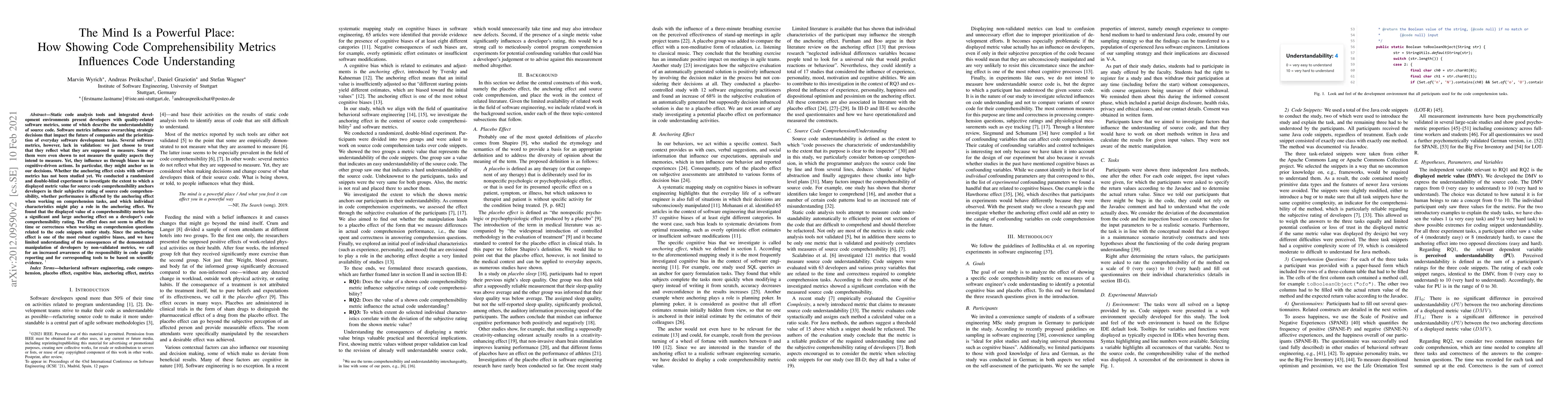 Static code analysis tools and integrated development environments present developers with quality-related software metrics, some of which describe the understandability of source code. Software metrics influence overarching strategic decisions that impact the future of companies and the prioritization of everyday software development tasks. Several software metrics, however, lack in validation: we just choose to trust that they reflect what they are supposed to measure. Some of them were even shown to not measure the quality aspects they intend to measure. Yet, they influence us through biases in our cognitive-driven actions. In particular, they might anchor us in our decisions. Whether the anchoring effect exists with software metrics has not been studied yet. We conducted a randomized and double-blind experiment to investigate the extent to which a displayed metric value for source code comprehensibility anchors developers in their subjective rating of source code comprehensibility, whether performance is affected by the anchoring effect when working on comprehension tasks, and which individual characteristics might play a role in the anchoring effect. We found that the displayed value of a comprehensibility metric has a significant and large anchoring effect on a developer's code comprehensibility rating. The effect does not seem to affect the time or correctness when working on comprehension questions related to the code snippets under study. Since the anchoring effect is one of the most robust cognitive biases, and we have limited understanding of the consequences of the demonstrated manipulation of developers by non-validated metrics, we call for an increased awareness of the responsibility in code quality reporting and for corresponding tools to be based on scientific evidence.