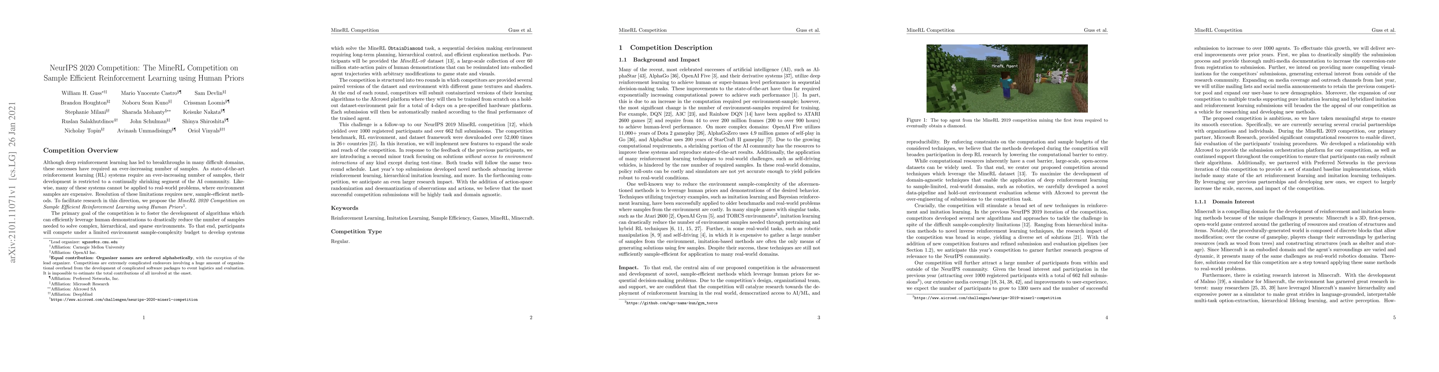 The MineRL 2020 Competition aims to advance sample-efficient reinforcement learning by leveraging human priors to reduce the sample requirements for solving complex environments. The competition focuses on developing algorithms that can solve the MineRL ObtainDiamond task in Minecraft under strict sample-complexity constraints, with new features introduced to expand participation and encourage domain-agnostic solutions.