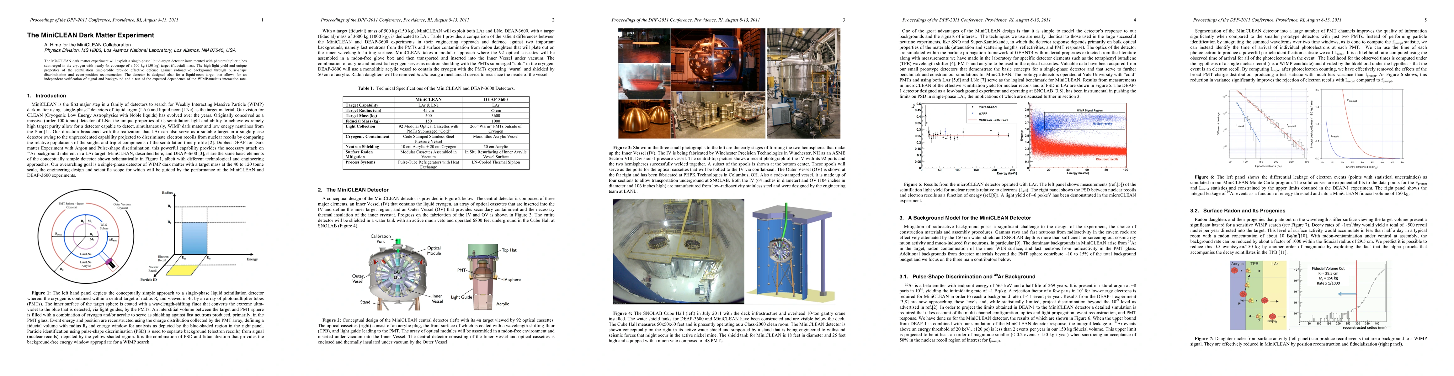 The MiniCLEAN experiment uses a single-phase liquid-argon detector to search for dark matter, utilizing pulse-shape discrimination and event-position reconstruction to effectively counter radioactive background. It also features a liquid-neon target for independent verification and testing of WIMP-nucleus interaction rates.