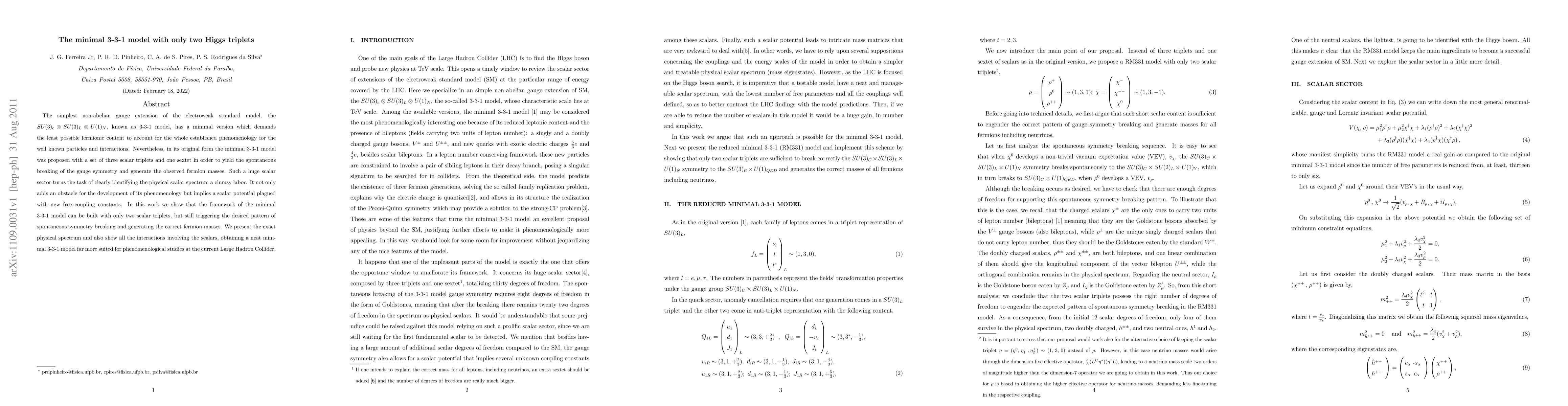 This paper proposes a simplified version of the minimal 3-3-1 model using only two Higgs triplets instead of three, maintaining the desired symmetry breaking and fermion mass generation while reducing complexity and the number of free parameters. This streamlined model is more conducive to phenomenological studies.