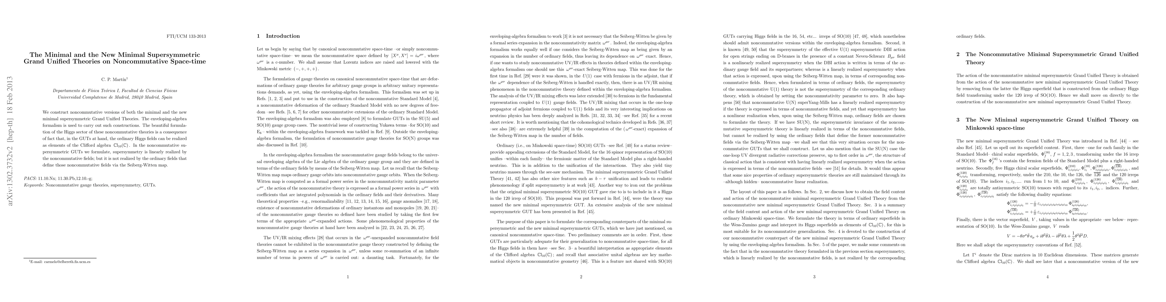 We construct noncommutative versions of both the minimal and the new minimal supersymmetric Grand Unified Theories. The enveloping-algebra formalism is used to carry out such constructions. The beautiful formulation of the Higgs sector of these noncommutative theories is a consequence of fact that, in the GUTs at hand, the ordinary Higgs fields can be realized as elements of the Clifford algebra Cl10(C). In the noncommutative supersymmetric GUTs we formulate, supersymmetry is linearly realized by the noncommutative fields; but it is not realized by the ordinary fields that define those noncommutative fields via the Seiberg-Witten map.