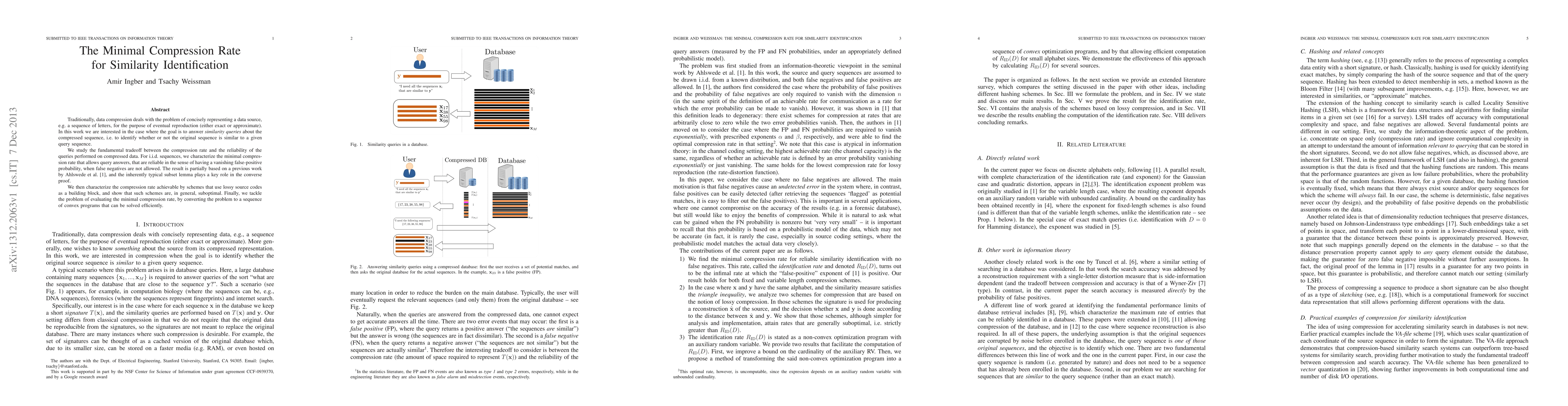 This paper explores the minimal compression rate necessary for reliable similarity queries on compressed data sequences, demonstrating a fundamental tradeoff between compression efficiency and query reliability. It shows that lossy source codes are generally suboptimal for this task and proposes an efficient method to evaluate the minimal compression rate through a series of convex programs.