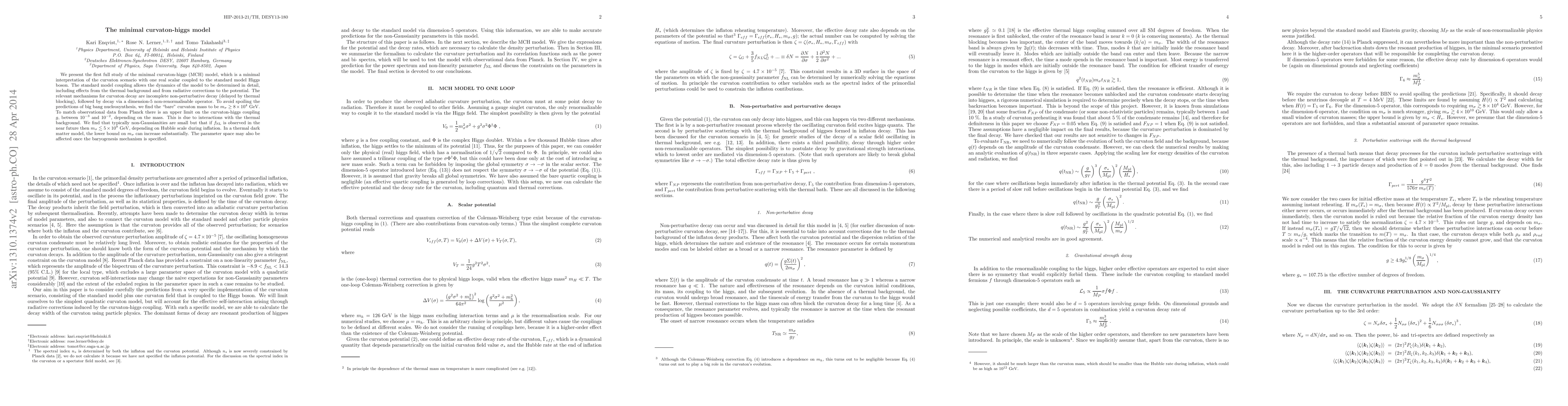 We present the first full study of the minimal curvaton-higgs (MCH) model, which is a minimal interpretation of the curvaton scenario with one real scalar coupled to the standard model Higgs boson. The standard model coupling allows the dynamics of the model to be determined in detail, including effects from the thermal background and from radiative corrections to the potential. The relevant mechanisms for curvaton decay are incomplete non-perturbative decay (delayed by thermal blocking), followed by decay via a dimension-5 non-renormalisable operator. To avoid spoiling the predictions of big bang nucleosynthesis, we find the "bare" curvaton mass to be m_\sigma > 8 x 10^4 GeV. To match observational data from Planck there is an upper limit on the curvaton-higgs coupling g, between 10^-3 and 10^-2, depending on the mass. This is due to interactions with the thermal background. We find that typically non-Gaussianities are small but that if fnl is observed in the near future then m_\sigma < 5 x 10^9 GeV, depending on Hubble scale during inflation. In a thermal dark matter model, the lower bound on m_\sigma\ can increase substantially. The parameter space may also be affected once the baryogenesis mechanism is specified.