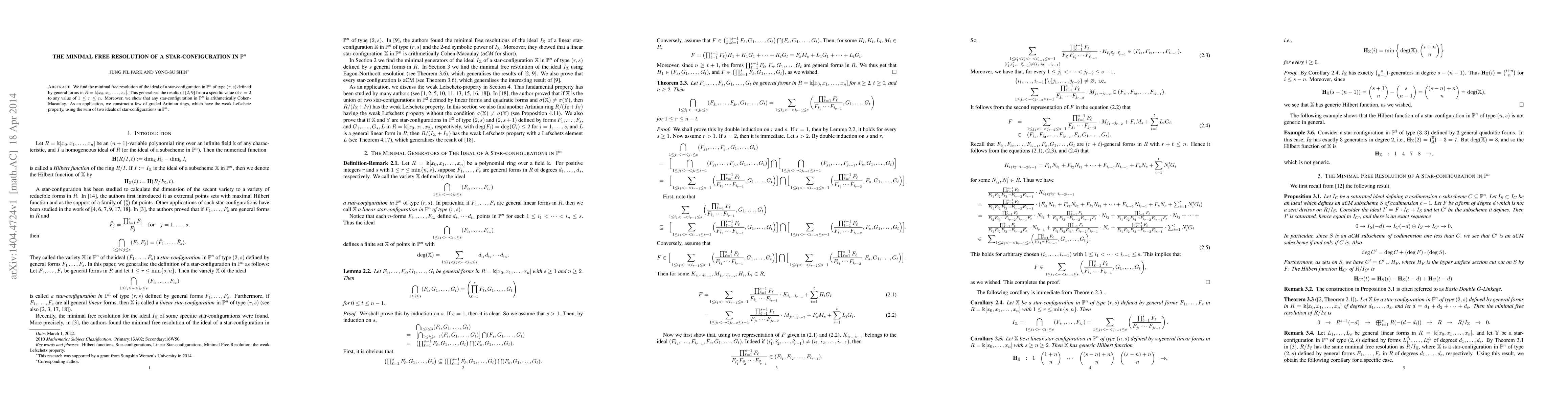 We find the minimal free resolution of the ideal of a star-configuration in $\mathbb{P}^n$ of type $(r,s)$ defined by general forms in $R=\Bbbk[x_0,x_1,\dots,x_n]$. This generalises the results of \cite{AS:1,GHM} from a specific value of $r=2$ to any value of $1\le r\le n$. Moreover, we show that any star-configuration in $\mathbb{P}^n$ is arithmetically Cohen-Macaulay. As an application, we construct a few of graded Artinian rings, which have the weak Lefschetz property, using the sum of two ideals of star-configurations in $\mathbb{P}^n$.