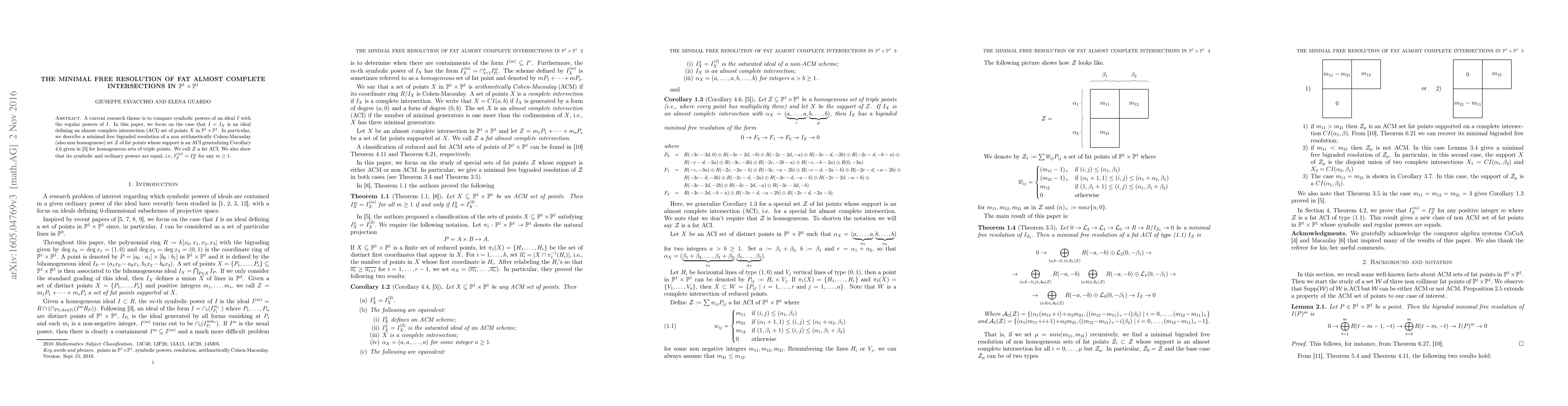 A current research theme is to compare symbolic powers of an ideal $I$ with the regular powers of $I$. In this paper, we focus on the case that $I=I_X$ is an ideal defining an almost complete intersection (ACI) sets of points $X$ in $\mathbb{P}^1\times\mathbb{P}^1$. In particular, we describe a minimal free bigraded resolution of a non arithmetically Cohen-Macaulay (also non homogeneus) set of fat points $\mathcal Z$ whose support is an ACI. We call $\mathcal Z$ a fat ACI. We also show that its symbolic and ordinary powers are equal, i.e, $I_{\mathcal Z}^{(m)}=I_{\mathcal Z}^{m}$ for any $m\geq 1.$
