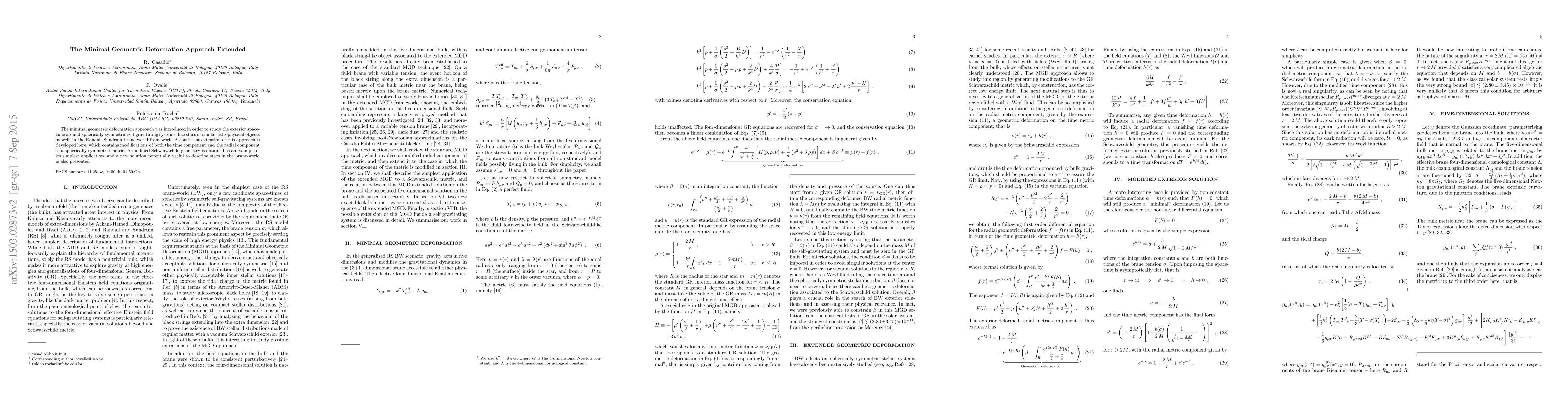 The minimal geometric deformation approach was introduced in order to study the exterior space-time around spherically symmetric self-gravitating systems, like stars or similar astrophysical objects as well, in the Randall-Sundrum brane-world framework. A consistent extension of this approach is developed here, which contains modifications of both the time component and the radial component of a spherically symmetric metric. A modified Schwarzschild geometry is obtained as an example of its simplest application, and a new solution potentially useful to describe stars in the brane-world is also presented.