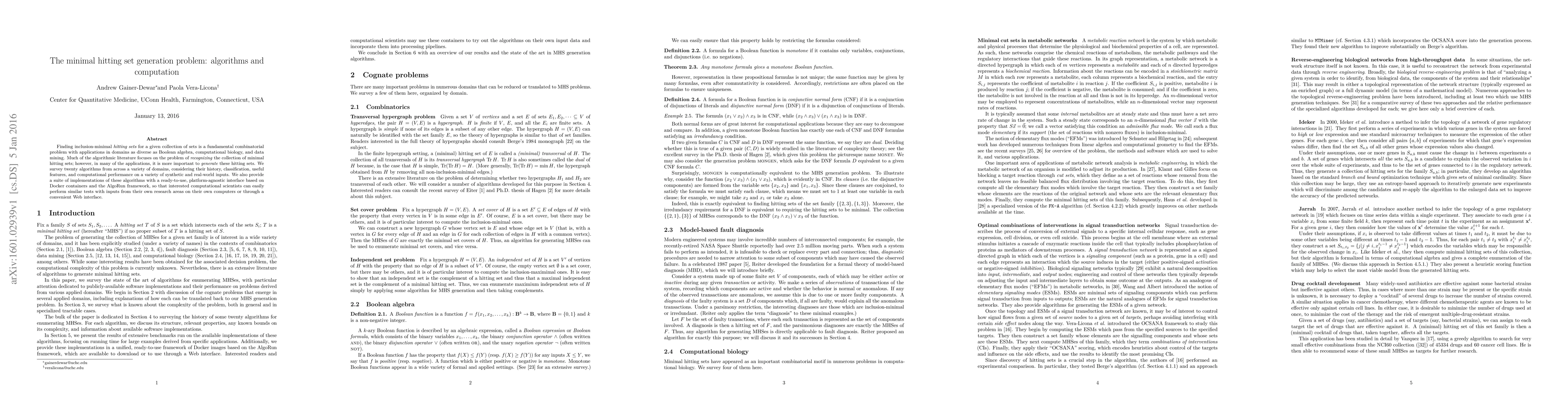 Finding inclusion-minimal "hitting sets" for a given collection of sets is a fundamental combinatorial problem with applications in domains as diverse as Boolean algebra, computational biology, and data mining. Much of the algorithmic literature focuses on the problem of *recognizing* the collection of minimal hitting sets; however, in many of the applications, it is more important to *generate* these hitting sets. We survey twenty algorithms from across a variety of domains, considering their history, classification, useful features, and computational performance on a variety of synthetic and real-world inputs. We also provide a suite of implementations of these algorithms with a ready-to-use, platform-agnostic interface based on Docker containers and the AlgoRun framework, so that interested computational scientists can easily perform similar tests with inputs from their own research areas on their own computers or through a convenient Web interface.