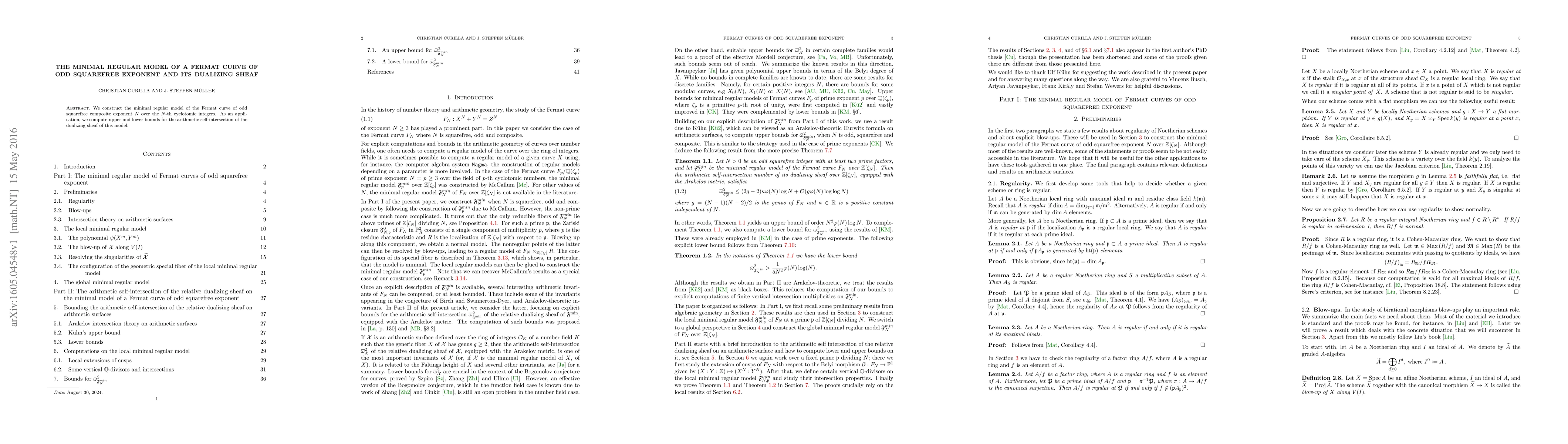 Summary: This paper constructs the minimal regular model of a Fermat curve of odd squarefree exponent over the $N$-th cyclotomic integers and computes bounds for the arithmetic self-intersection of its dualizing sheaf.