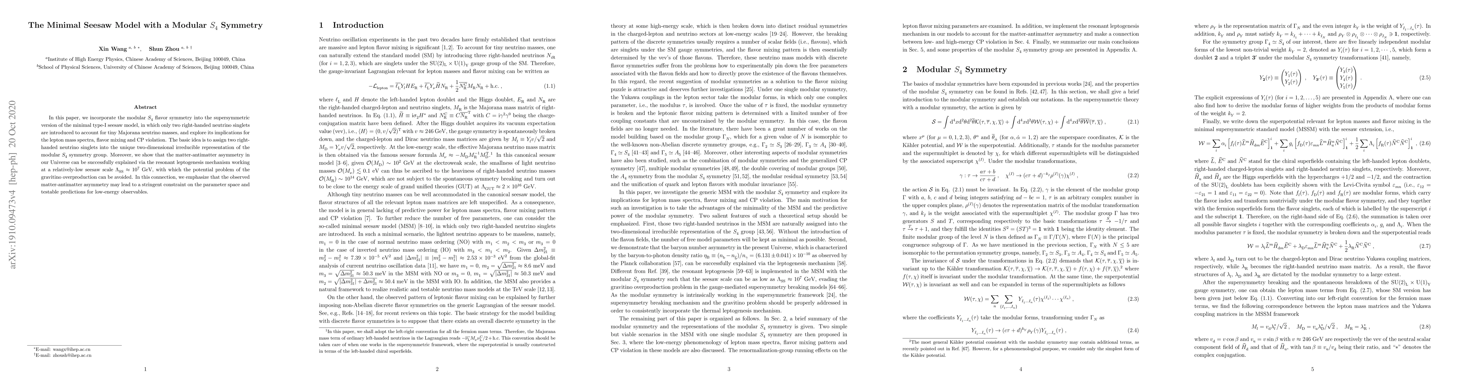 The introduction of modular $S_4$ symmetry into the supersymmetric seesaw model, providing a new perspective on flavor symmetry and leptogenesis mechanisms.