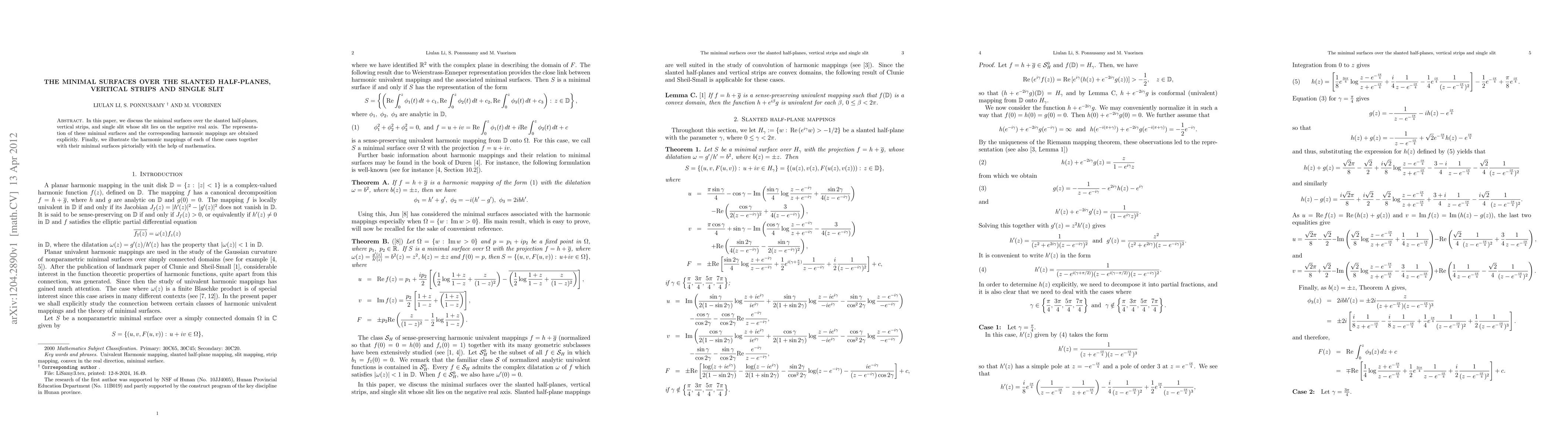 This paper explicitly represents minimal surfaces over slanted half-planes, vertical strips, and single slits, deriving corresponding harmonic mappings and illustrating them pictorially using Mathematica.
