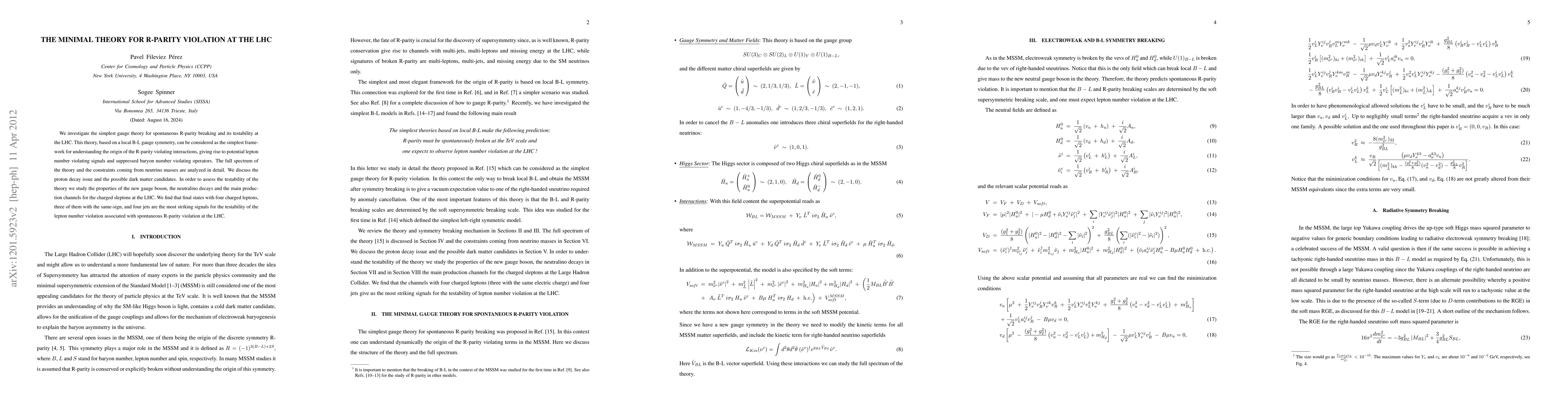 This paper explores a minimal gauge theory for spontaneous R-parity violation based on B-L symmetry, analyzing its implications for neutrino masses and potential LHC signals. It finds that four-lepton events with three same-sign leptons and four jets provide the most compelling evidence for lepton number violation at the LHC.