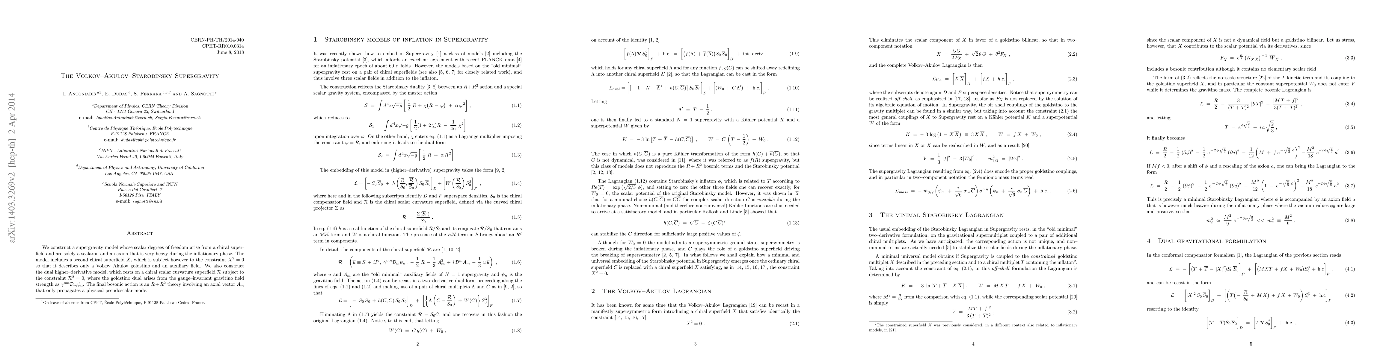 This paper constructs a minimal supergravity model featuring a scalaron and a heavy axion during inflation, with a second chiral superfield constrained to describe a goldstino and an auxiliary field. It also introduces a dual higher-derivative model based on a chiral scalar curvature superfield, resulting in an $R+R^2$ theory with a pseudoscalar axial vector.