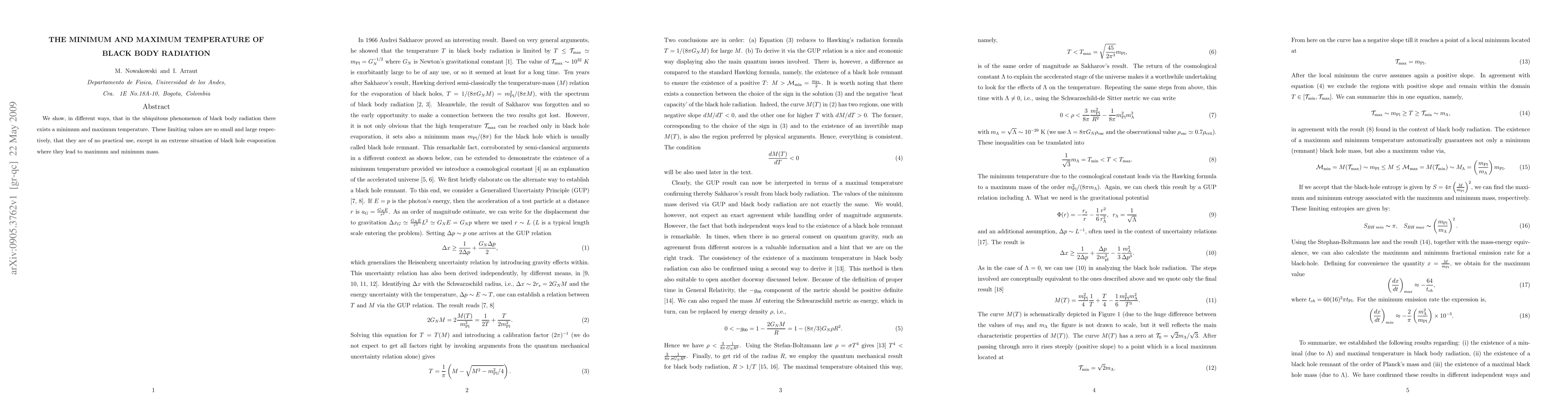 Summary: The paper demonstrates the existence of minimum and maximum temperature limits in black body radiation, which are practically irrelevant except in the context of black hole evaporation, where they correspond to minimum and maximum mass.