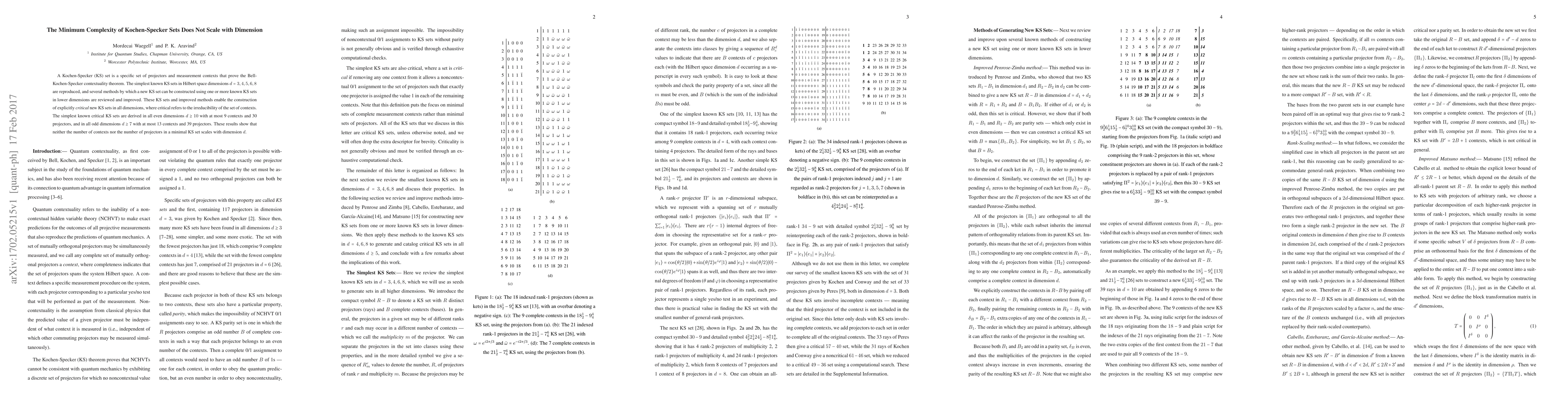 This paper demonstrates that the simplest known Kochen-Specker sets do not scale with dimension in terms of the number of contexts or projectors, providing critical KS sets in all dimensions with a fixed minimal number of contexts and projectors.