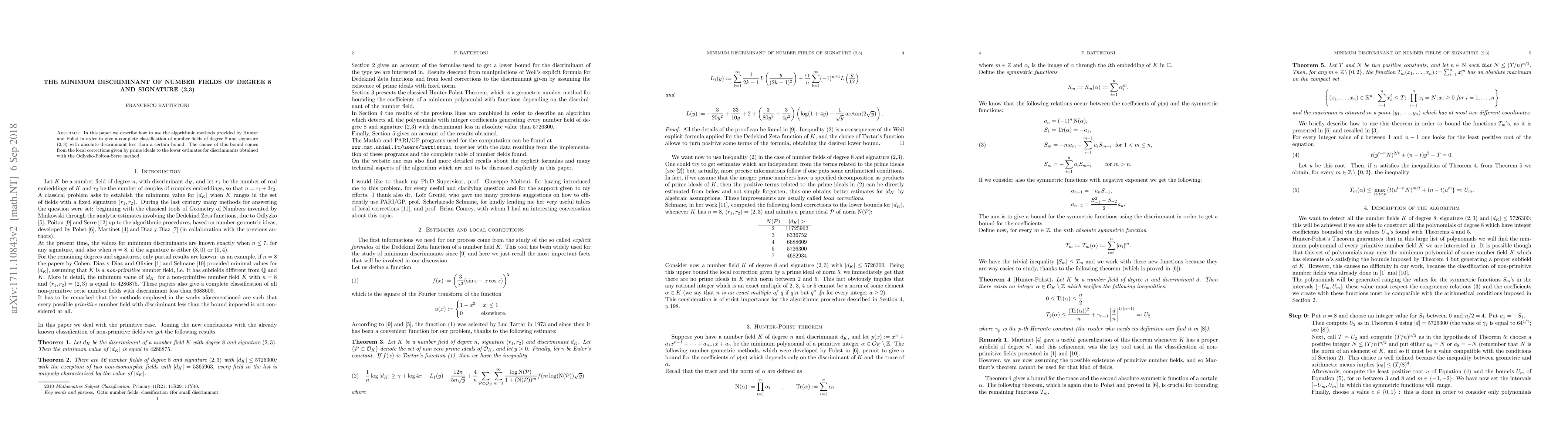 This paper classifies number fields of degree 8 and signature (2,3) with discriminants below a specific bound using algorithmic methods by Hunter and Pohst, refining estimates with local corrections from prime ideals and the Odlyzko-Poitou-Serre method.