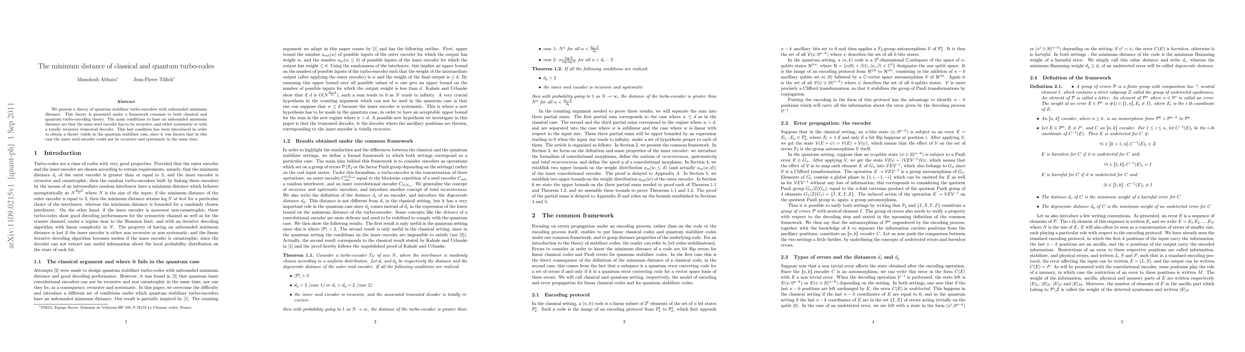 Researchers have developed a theory for unbounded minimum distance in quantum turbo-codes, revealing conditions under which classical and quantum codes share common characteristics.