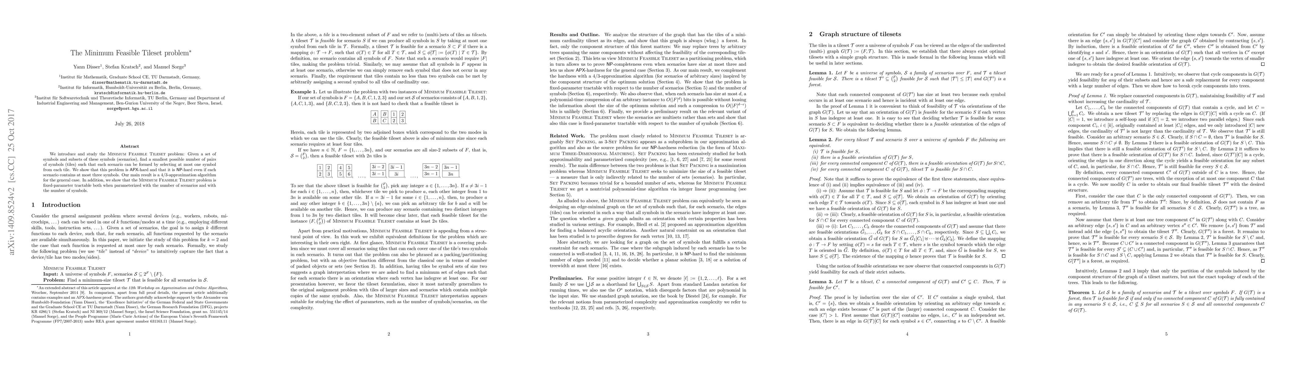 We introduce and study the Minimum Feasible Tileset problem: Given a set of symbols and subsets of these symbols (scenarios), find a smallest possible number of pairs of symbols (tiles) such that each scenario can be formed by selecting at most one symbol from each tile. We show that this problem is APX-hard and that it is NP-hard even if each scenario contains at most three symbols. Our main result is a 4/3-approximation algorithm for the general case. In addition, we show that the Minimum Feasible Tileset problem is fixed-parameter tractable both when parameterized with the number of scenarios and with the number of symbols.