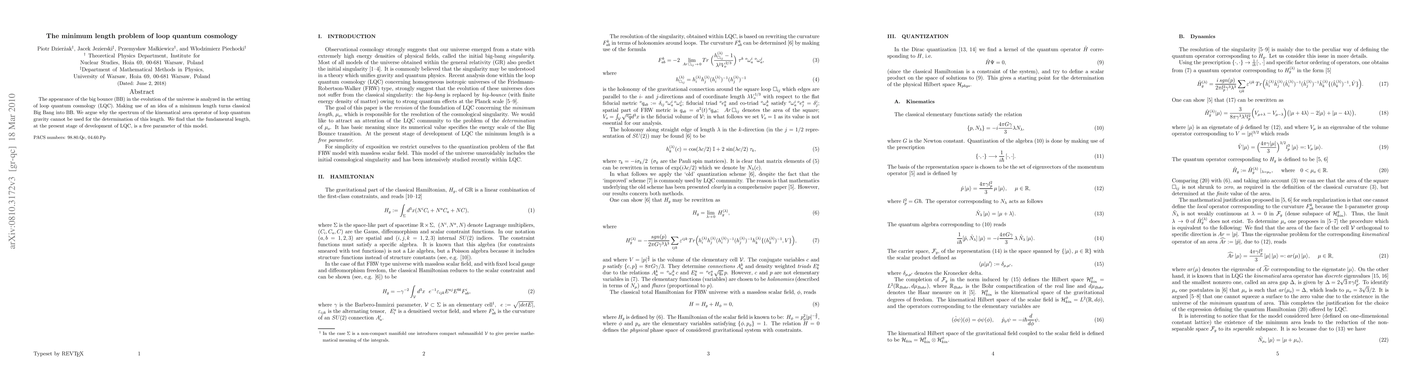 This paper investigates the big bounce phenomenon in loop quantum cosmology (LQC) and argues that the classical Big Bang transforms into a big bounce due to a minimum length consideration. It concludes that the fundamental length in LQC remains a free parameter, as the spectrum of the kinematical area operator cannot determine this length.