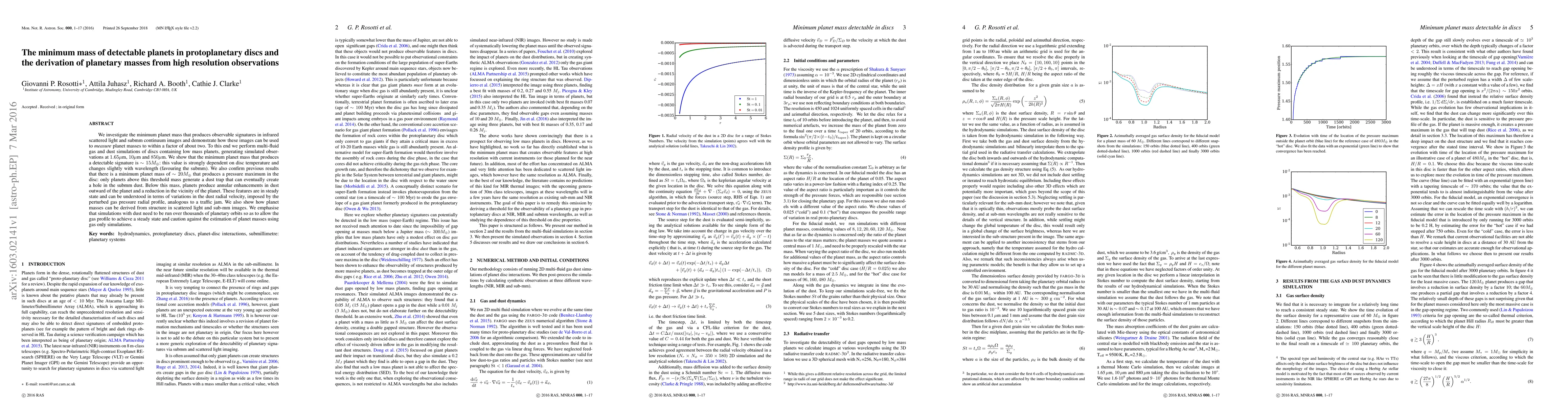 We investigate the minimum planet mass that produces observable signatures in infrared scattered light and submm continuum images and demonstrate how these images can be used to measure planet masses to within a factor of about two. To this end we perform multi-fluid gas and dust simulations of discs containing low mass planets, generating simulated observations at $1.65 \mu$m, $10 \mu$m and $850 \mu$m. We show that the minimum planet mass that produces a detectable signature is $\sim 15 M_\oplus$: this value is strongly dependent on disc temperature and changes slightly with wavelength (favouring the submm). We also confirm previous results that there is a minimum planet mass of $\sim 20 M_\oplus$ that produces a pressure maximum in the disc: only planets above this threshold mass generate a dust trap that can eventually create a hole in the submm dust. Below this mass, planets produce annular enhancements in dust outward of the planet and a reduction in the vicinity of the planet. These features are in steady state and can be understood in terms of variations in the dust radial velocity, imposed by the perturbed gas pressure radial profile, analogous to a traffic jam. We also show how planet masses can be derived from structure in scattered light and sub-mm images. We emphasise that simulations with dust need to be run over thousands of planetary orbits so as to allow the gas profile to achieve a steady state and caution against the estimation of planet masses using gas only simulations.