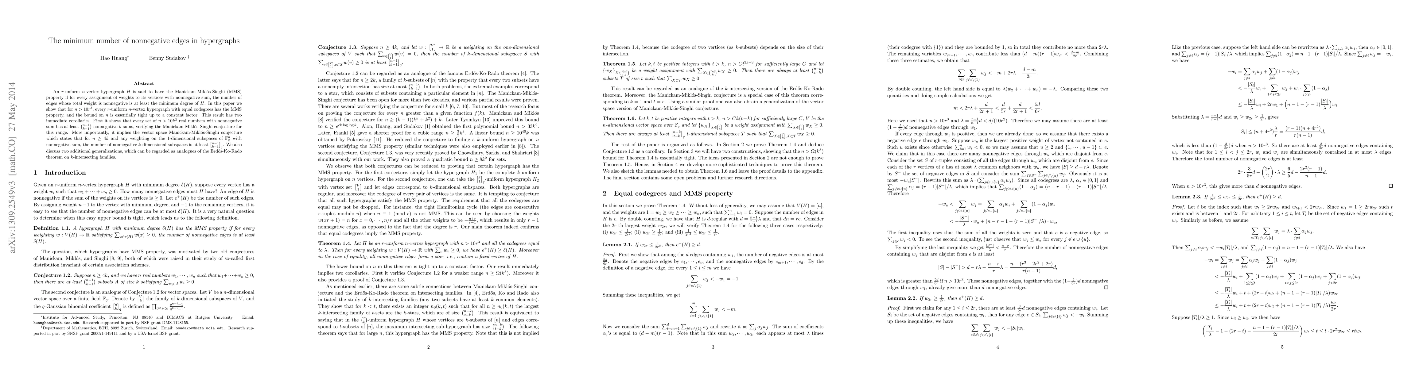 The paper proves that for hypergraphs with equal degrees, every r-uniform n-vertex hypergraph has the MMS property for n>10r^3, showing its implications on k-sums and subspace dimensions.
