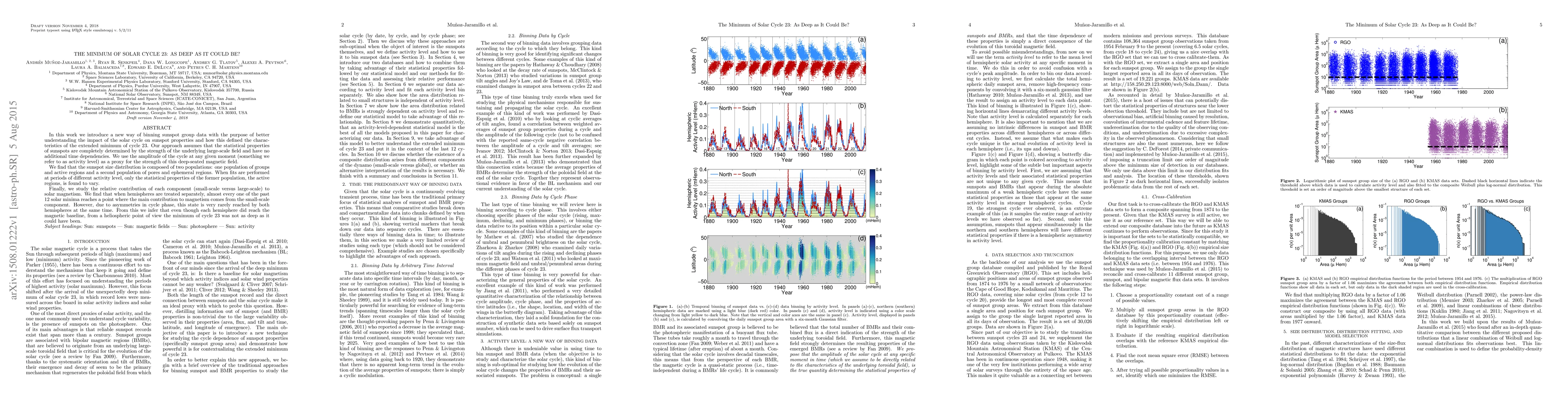 In this work we introduce a new way of binning sunspot group data with the purpose of better understanding the impact of the solar cycle on sunspot properties and how this defined the characteristics of the extended minimum of cycle 23. Our approach assumes that the statistical properties of sunspots are completely determined by the strength of the underlying large-scale field and have no additional time dependencies. We use the amplitude of the cycle at any given moment (something we refer to as activity level) as a proxy for the strength of this deep-seated magnetic field. We find that the sunspot size distribution is composed of two populations: one population of groups and active regions and a second population of pores and ephemeral regions. When fits are performed at periods of different activity level, only the statistical properties of the former population, the active regions, is found to vary. Finally, we study the relative contribution of each component (small-scale versus large-scale) to solar magnetism. We find that when hemispheres are treated separately, almost every one of the past 12 solar minima reaches a point where the main contribution to magnetism comes from the small-scale component. However, due to asymmetries in cycle phase, this state is very rarely reached by both hemispheres at the same time. From this we infer that even though each hemisphere did reach the magnetic baseline, from a heliospheric point of view the minimum of cycle 23 was not as deep as it could have been.