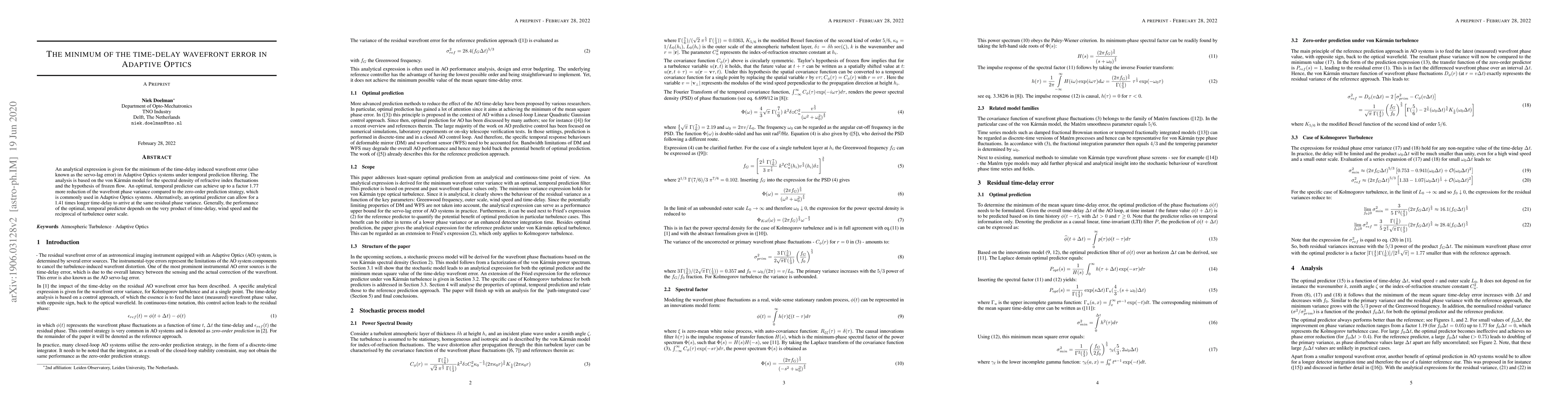 This paper derives an analytical expression for the minimum time-delay wavefront error in Adaptive Optics systems using temporal prediction filtering. It shows that an optimal predictor can reduce wavefront phase variance by a factor of 1.77 compared to the zero-order strategy, or allow for a 1.41 times longer time-delay for the same variance, depending on wind speed and turbulence scale.