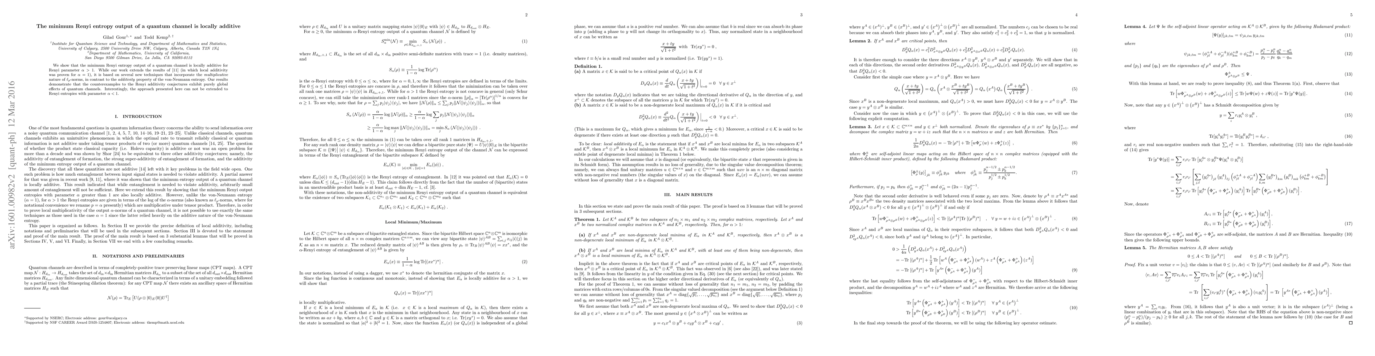 This paper demonstrates that the minimum Renyi entropy output of a quantum channel is locally additive for Renyi parameter α > 1, employing new techniques based on p-norms. This extends previous results for α = 1 and highlights global effects in counterexamples, while the approach does not apply to α < 1.