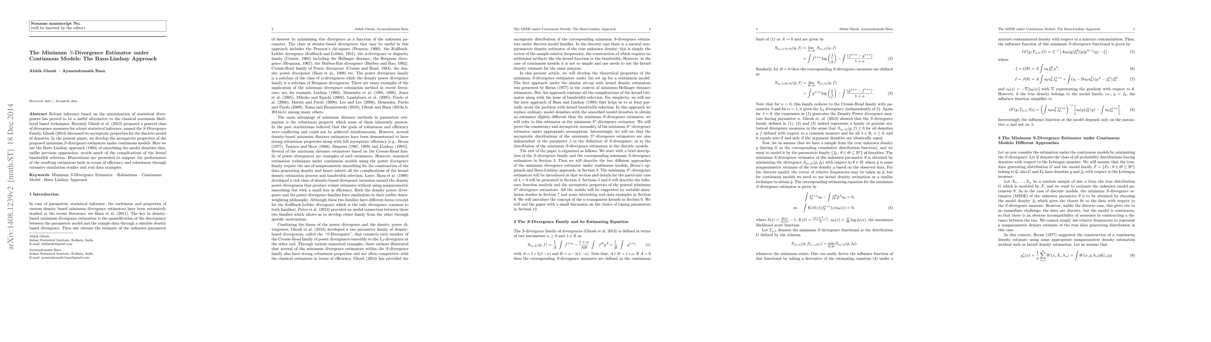 This paper develops the asymptotic properties of minimum S-Divergence estimators under continuous models using the Basu-Lindsay approach, which smooths model densities to avoid kernel bandwidth selection issues. The study demonstrates the efficiency and robustness of the proposed estimators through simulations and real data examples.
