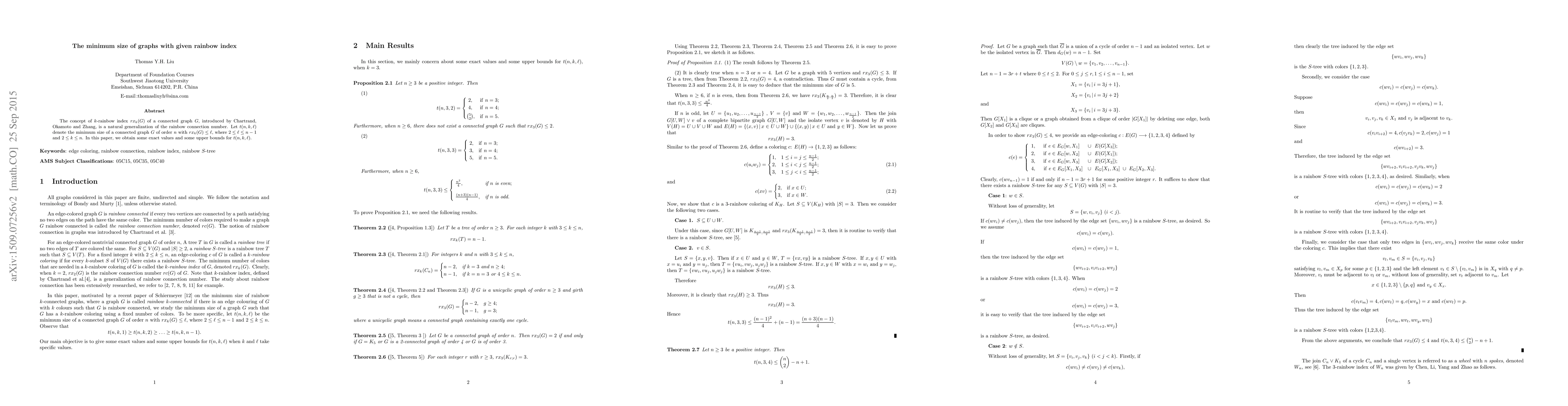 This paper investigates the minimum size of connected graphs with a specified $k$-rainbow index, a generalization of the rainbow connection number. It provides exact values and upper bounds for $t(n,k,\ell)$, the smallest number of edges in such graphs of order $n$.