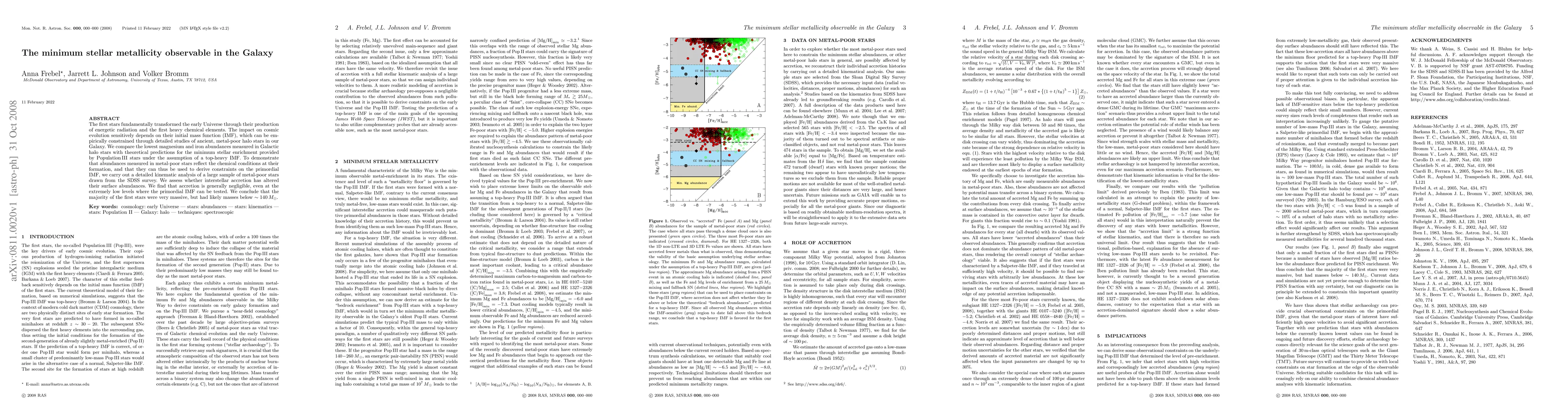 The first stars fundamentally transformed the early Universe through their production of energetic radiation and the first heavy chemical elements. The impact on cosmic evolution sensitively depends on their initial mass function (IMF), which can be empirically constrained through detailed studies of ancient, metal-poor halo stars in our Galaxy. We compare the lowest magnesium and iron abundances measured in Galactic halo stars with theoretical predictions for the minimum stellar enrichment provided by Population III stars under the assumption of a top-heavy IMF. To demonstrate that abundances measured in metal-poor stars reflect the chemical conditions at their formation, and that they can thus be used to derive constraints on the primordial IMF, we carry out a detailed kinematic analysis of a large sample of metal-poor stars drawn from the SDSS survey. We assess whether interstellar accretion has altered their surface abundances. We find that accretion is generally negligible, even at the extremely low levels where the primordial IMF can be tested. We conclude that the majority of the first stars were very massive, but had likely masses below ~140 M.