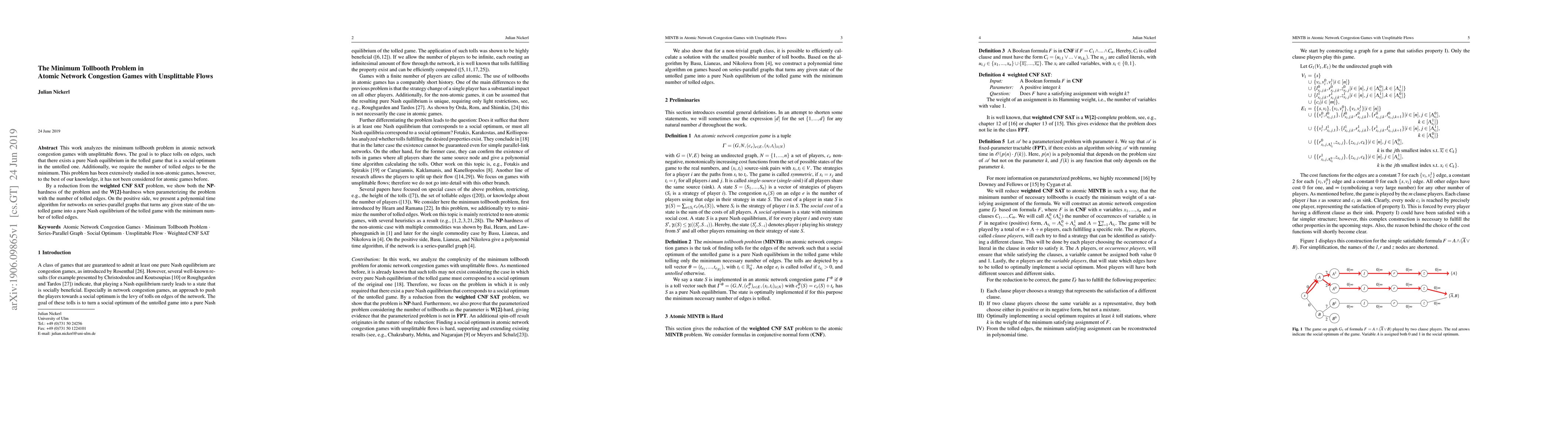 Researchers developed a solution to place tolls on network edges in congestion games with unsplittable flows, achieving the minimum number of tolled edges while ensuring a pure Nash equilibrium. The study also explores the problem's complexity and presents an algorithm for solving it in polynomial time.