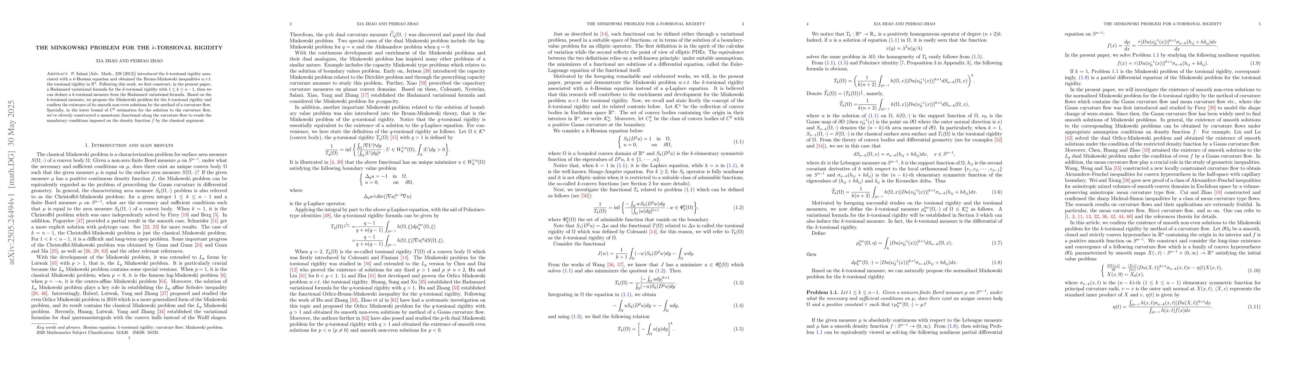 The paper presents a Hadamard variational formula for k-torsional rigidity, a derived k-torsional measure, and a novel curvature flow method with a monotonic functional for C^0 estimation, all crucial for addressing the Minkowski problem in this context.
