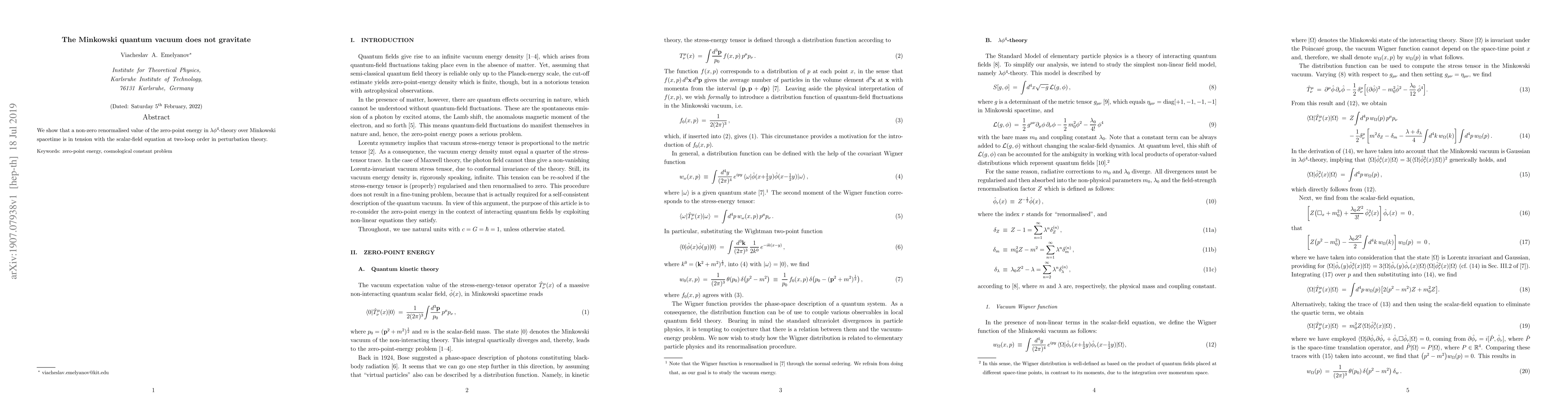 We show that a non-zero renormalised value of the zero-point energy in $\lambda\phi^4$-theory over Minkowski spacetime is in tension with the scalar-field equation at two-loop order in perturbation theory.