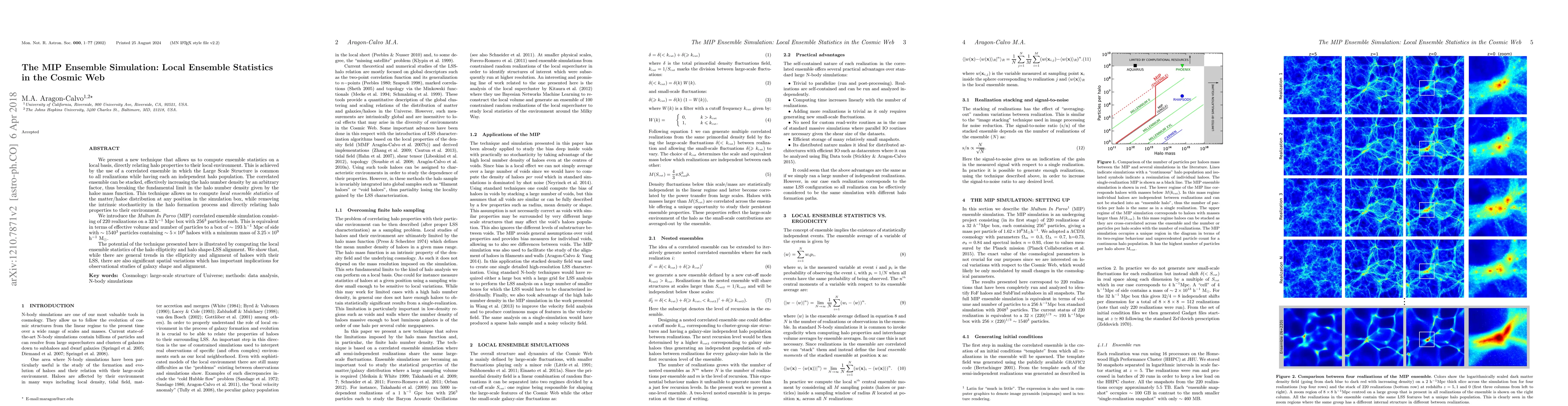 We present a new technique that allows us to compute ensemble statistics on a local basis, directly relating halo properties to their local environment. This is achieved by the use of a correlated ensemble in which the Large Scale Structure is common to all realizations while having each an independent halo population. The correlated ensemble can be stacked, effectively increasing the halo number density by an arbitrary factor, thus breaking the fundamental limit in the halo number density given by the haloe mass function. This technique allows us to compute \textit{local ensemble statistics} of the matter/haloe distribution at any position in the simulation box, while removing the intrinsic stochasticity in the halo formation process and directly relating halo properties to their environment. We introduce the \textit{Multum In Parvo} (MIP) correlated ensemble simulation consisting of 220 realizations on a 32 h$^{-1}$ Mpc box with $256^3$ particles each. This is equivalent in terms of effective volume and number of particles to a box of $\sim 193$ h$^{-1}$ Mpc of side with $\sim 1540^3$ particles containing $\sim 5\times 10^6$ haloes with a minimum mass of $3.25 \times 10^9$ h$^{-1}$ M$_{\odot}$. The potential of the technique presented here is illustrated by computing the local ensemble statistics of the halo ellipticity and halo shape-LSS alignment. We show that, while there are general trends in the ellipticity and alignment of haloes with their LSS, there are also significant spatial variations which has important implications for observational studies of galaxy shape and alignment.