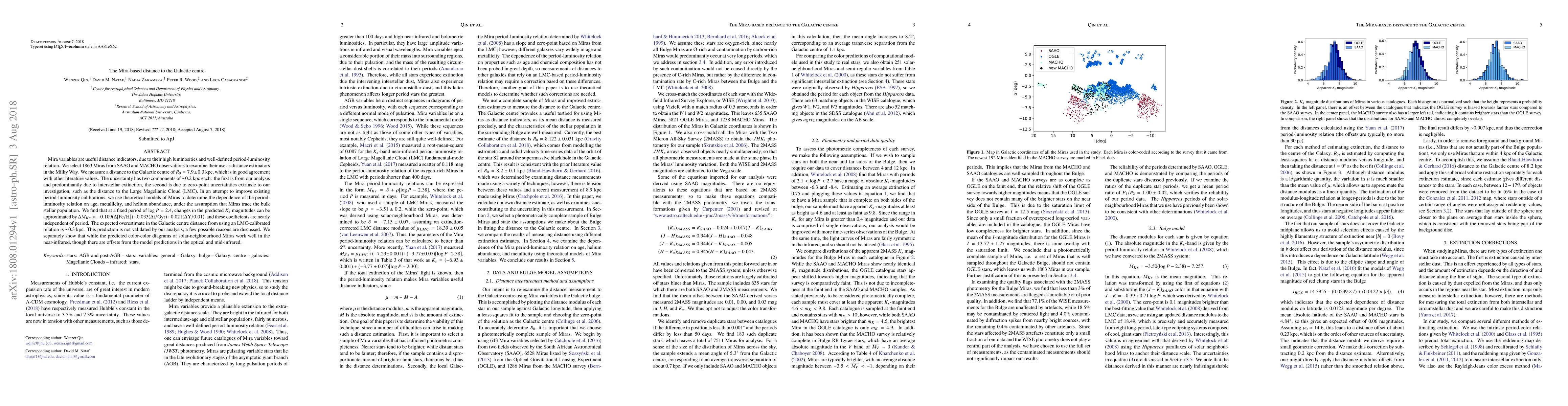 Mira variables are useful distance indicators, due to their high luminosities and well-defined period-luminosity relation. We select 1863 Miras from SAAO and MACHO observations to examine their use as distance estimators in the Milky Way. We measure a distance to the Galactic centre of $R_0 = 7.9 \pm 0.3$ kpc, which is in good agreement with other literature values. The uncertainty has two components of $\sim$0.2 kpc each: the first is from our analysis and predominantly due to interstellar extinction, the second is due to zero-point uncertainties extrinsic to our investigation, such as the distance to the Large Magellanic Cloud (LMC). In an attempt to improve existing period-luminosity calibrations, we use theoretical models of Miras to determine the dependence of the period-luminosity relation on age, metallicity, and helium abundance, under the assumption that Miras trace the bulk stellar population. We find that at a fixed period of $\log P = 2.4$, changes in the predicted $K_s$ magnitudes can be approximated by $\Delta M_{Ks} \approx -0.109(\Delta \rm{[Fe/H]}) + 0.033( {\Delta}t/\rm{Gyr}) + 0.021 ({\Delta}Y/0.01)$, and these coefficients are nearly independent of period. The expected overestimate in the Galactic centre distance from using an LMC-calibrated relation is $\sim$0.3 kpc. This prediction is not validated by our analysis; a few possible reasons are discussed. We separately show that while the predicted color-color diagrams of solar-neighbourhood Miras work well in the near-infrared, though there are offsets from the model predictions in the optical and mid-infrared.