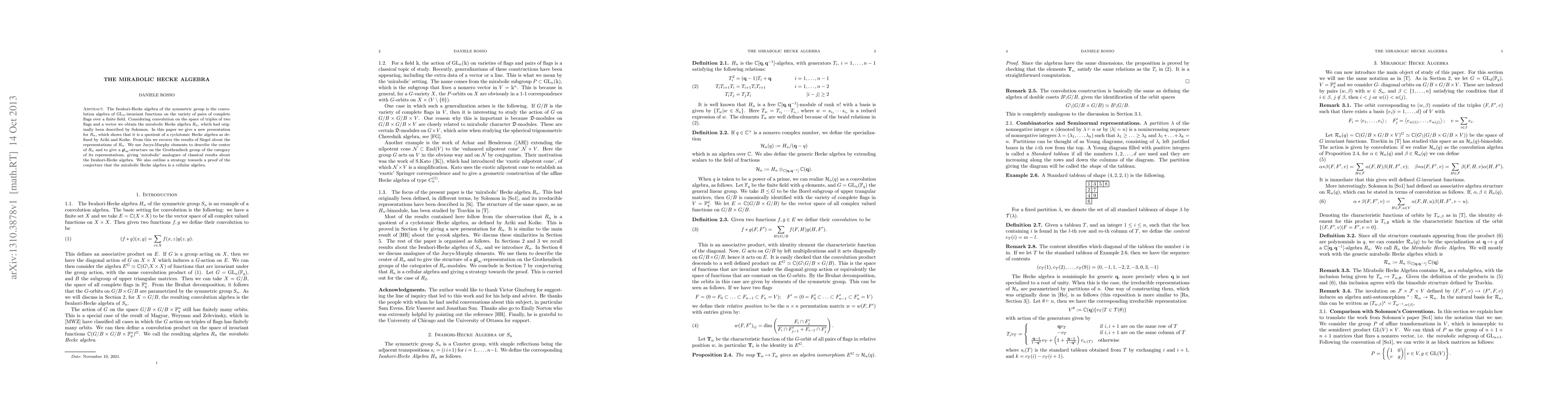 The Iwahori-Hecke algebra of the symmetric group is the convolution algebra of $\gl_n$-invariant functions on the variety of pairs of complete flags over a finite field. Considering convolution on the space of triples of two flags and a vector we obtain the mirabolic Hecke algebra $R_n$, which had originally been described by Solomon. In this paper we give a new presentation for $R_n$ which shows that it is a quotient of a cyclotomic Hecke algebra, as defined by Ariki and Koike. From this we recover the results of Siegel about the representations of $R_n$. We use Jucys-Murphy elements to describe the center of $R_n$ and to give a $\mathfrak{gl}_\infty$-structure on the Grothendieck group of the category of its representations, giving `mirabolic' analogues of classical results about the Iwahori-Hecke algebra. We also outline a strategy towards a proof of the conjecture that the mirabolic Hecke algebra is a cellular algebra.