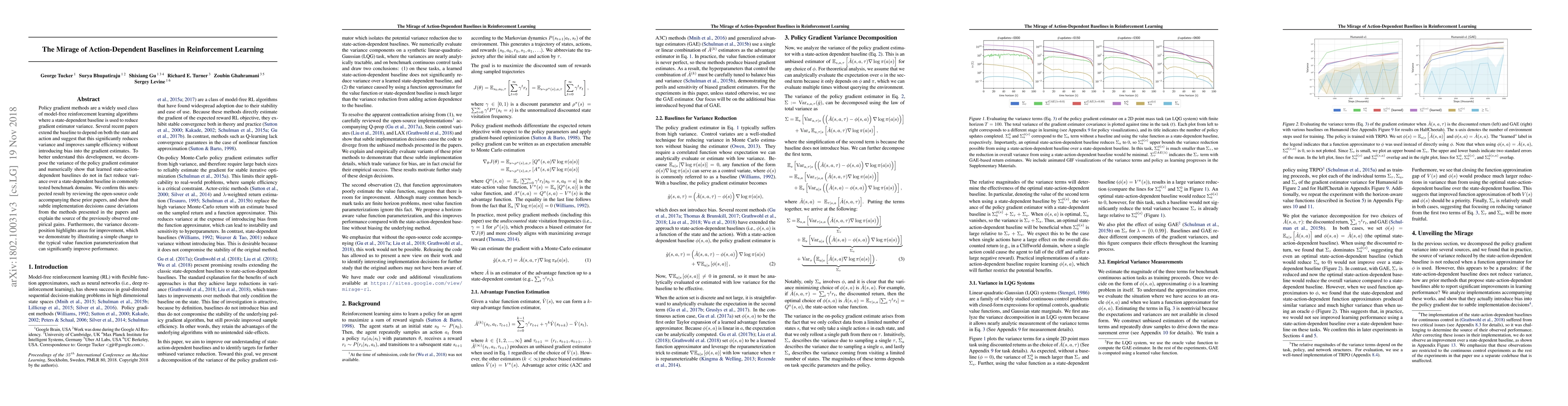 This paper argues that action-dependent baselines in policy gradient reinforcement learning do not reduce variance as claimed, due to implementation discrepancies. It proposes a simple adjustment to the value function parameterization to enhance performance.