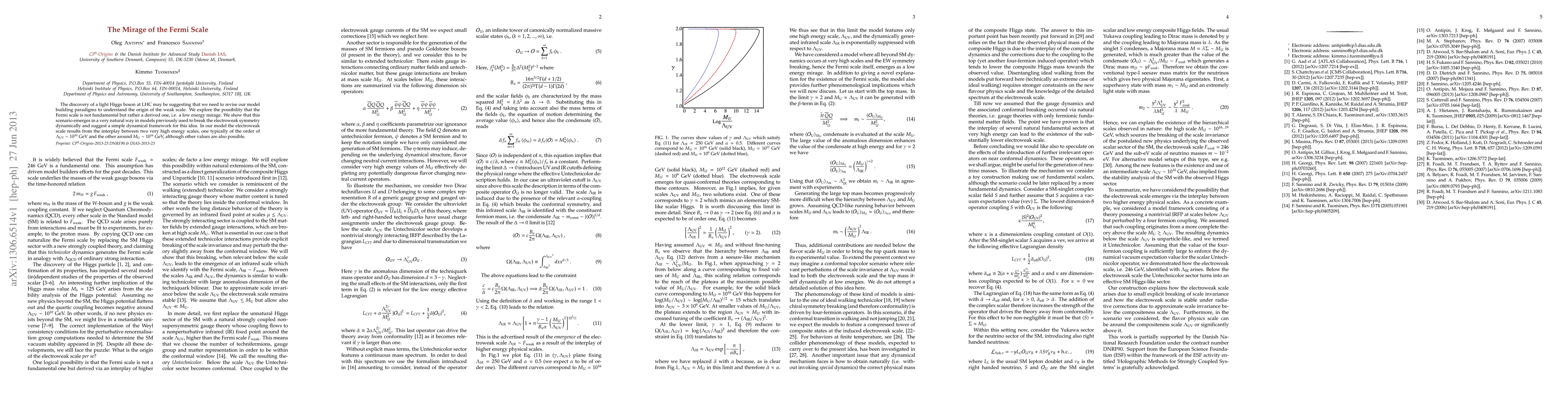 The discovery of a light Higgs boson at LHC may be suggesting that we need to revise our model building paradigms to understand the origin of the weak scale. We explore the possibility that the Fermi scale is not fundamental but rather a derived one, i.e. a low energy mirage. We show that this scenario emerges in a very natural way in models previously used to break the electroweak symmetry dynamically and suggest a simple dynamical framework for this idea. In our model the electroweak scale results from the interplay between two very high energy scales, one typically of the order of $\Luv\sim 10^{10}$ GeV and the other around $M_{\rm U} \sim 10^{16}$ GeV, although other values are also possible.