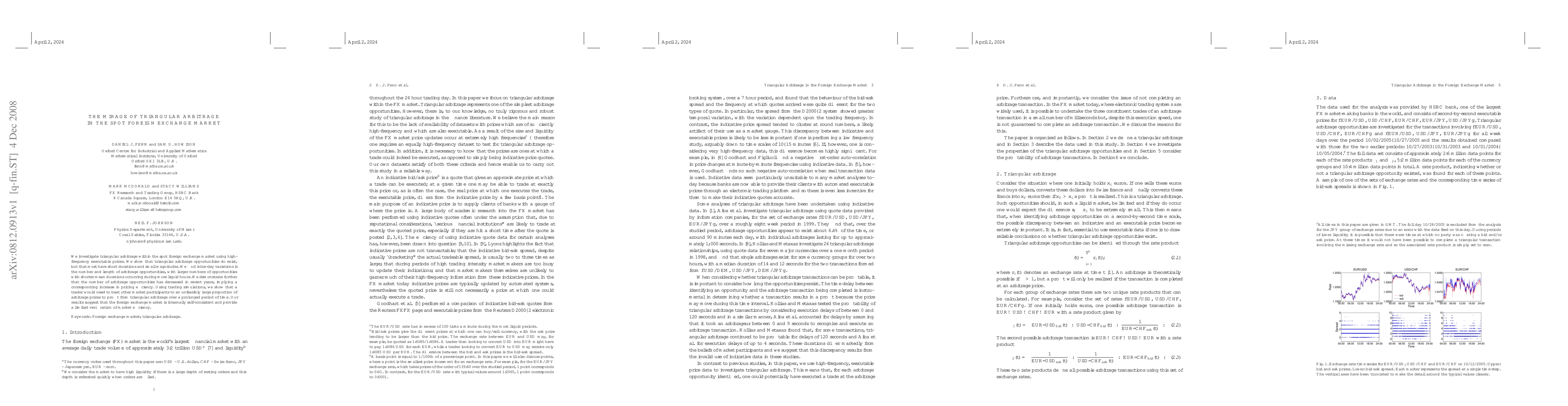This paper examines triangular arbitrage opportunities in the spot foreign exchange market, revealing that while such opportunities exist, they are fleeting and small in magnitude. The study finds that arbitrage opportunities are more frequent during high liquidity periods but have decreased recently, indicating improved market efficiency.