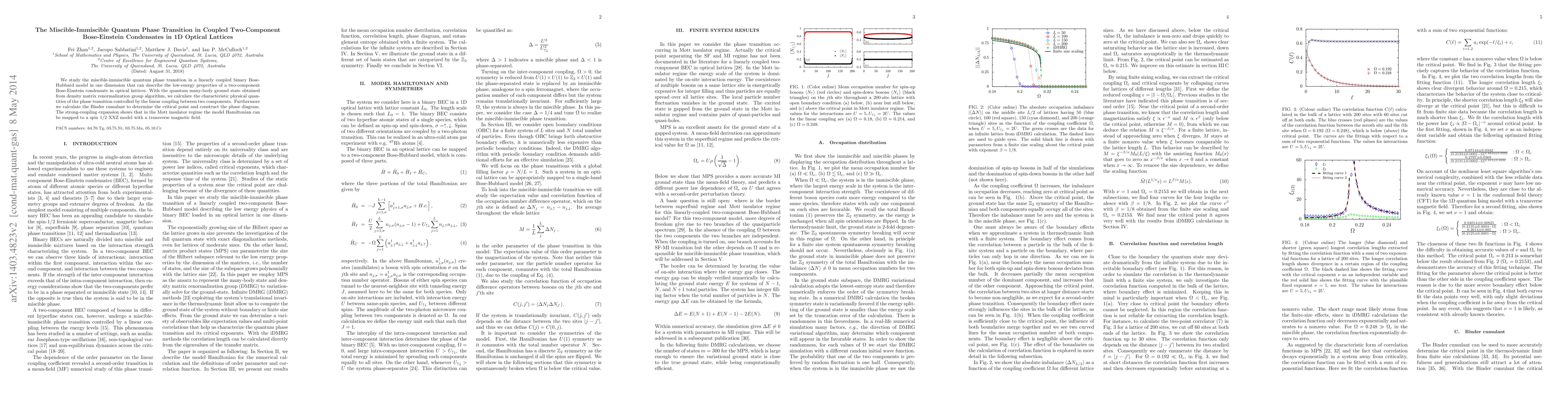 This paper investigates the miscible-immiscible quantum phase transition in a coupled two-component Bose-Einstein condensate using numerical techniques. The study employs the density matrix renormalization group algorithm to obtain the ground state and calculate the critical point via the Binder cumulant, leading to the construction of a phase diagram.