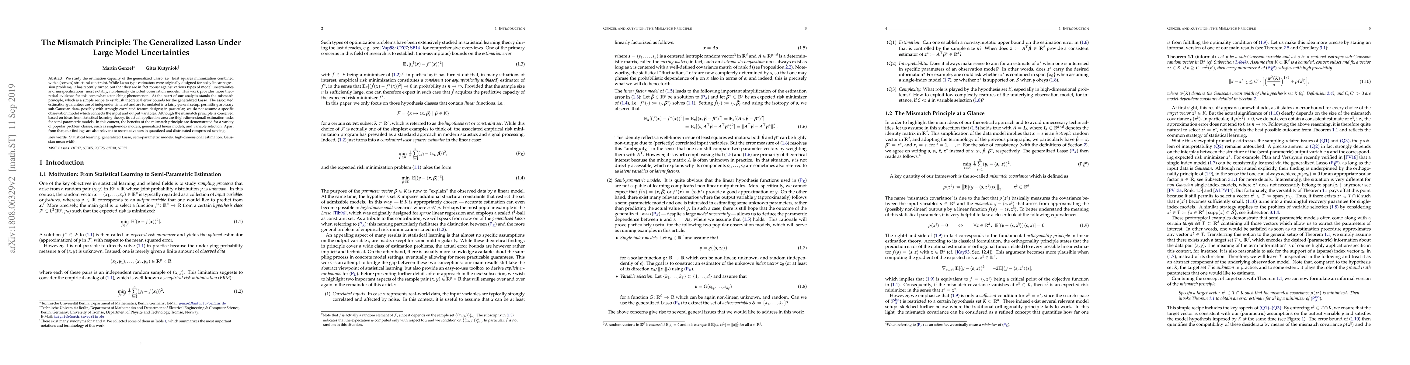 We study the estimation capacity of the generalized Lasso, i.e., least squares minimization combined with a (convex) structural constraint. While Lasso-type estimators were originally designed for noisy linear regression problems, it has recently turned out that they are in fact robust against various types of model uncertainties and misspecifications, most notably, non-linearly distorted observation models. This work provides more theoretical evidence for this somewhat astonishing phenomenon. At the heart of our analysis stands the mismatch principle, which is a simple recipe to establish theoretical error bounds for the generalized Lasso. The associated estimation guarantees are of independent interest and are formulated in a fairly general setup, permitting arbitrary sub-Gaussian data, possibly with strongly correlated feature designs; in particular, we do not assume a specific observation model which connects the input and output variables. Although the mismatch principle is conceived based on ideas from statistical learning theory, its actual application area are (high-dimensional) estimation tasks for semi-parametric models. In this context, the benefits of the mismatch principle are demonstrated for a variety of popular problem classes, such as single-index models, generalized linear models, and variable selection. Apart from that, our findings are also relevant to recent advances in quantized and distributed compressed sensing.