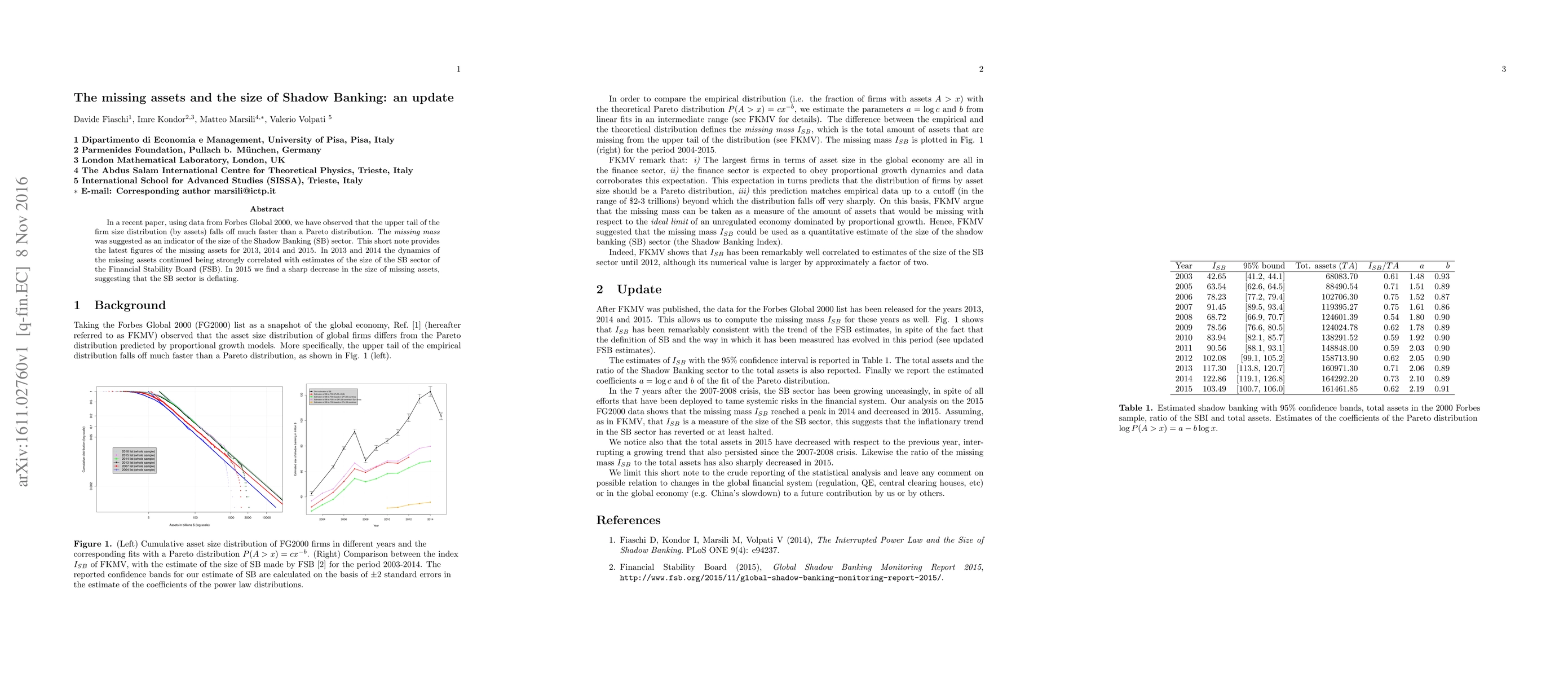 A study updates estimates of missing assets in the firm size distribution, suggesting a decline in Shadow Banking activity between 2013-2015, indicating deflation.
