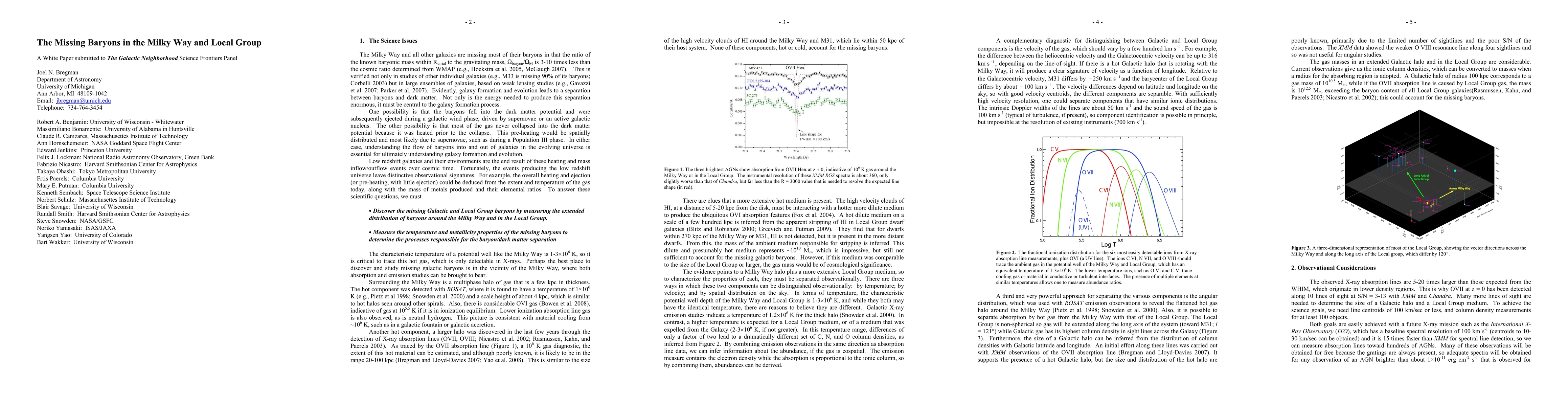 This paper explores the discrepancy between the known baryonic mass and the gravitating mass in the Milky Way and Local Group, suggesting that most baryons are missing. It proposes that X-ray observations, such as those from IXO, could help identify and study these missing baryons, potentially revealing whether they were never incorporated into galaxies or were expelled by galactic winds.