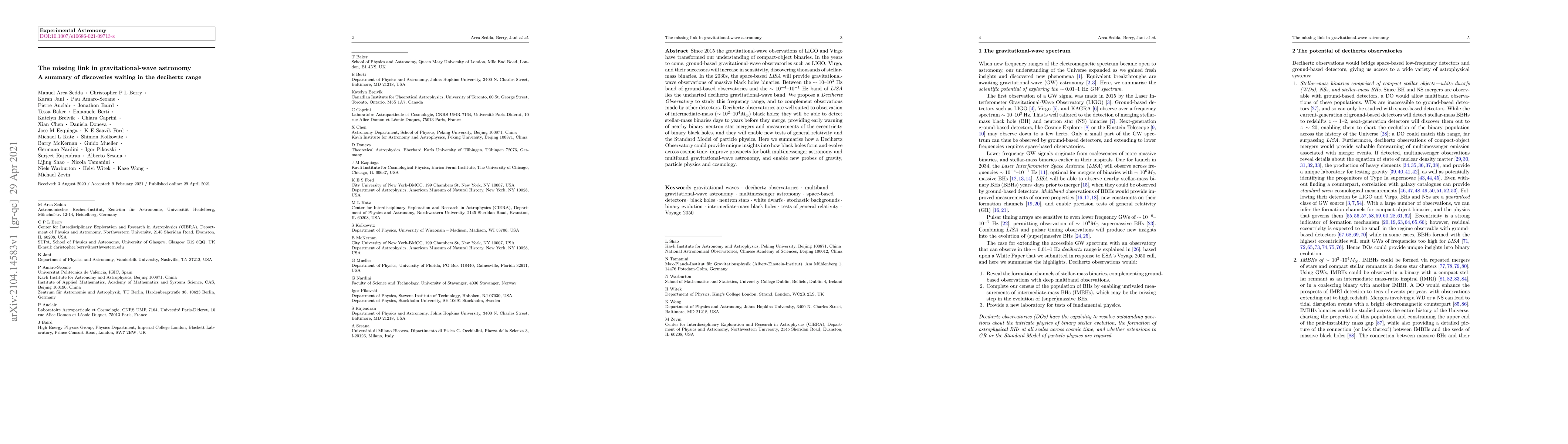 Since 2015 the gravitational-wave observations of LIGO and Virgo have transformed our understanding of compact-object binaries. In the years to come, ground-based gravitational-wave observatories such as LIGO, Virgo, and their successors will increase in sensitivity, discovering thousands of stellar-mass binaries. In the 2030s, the space-based LISA will provide gravitational-wave observations of massive black holes binaries. Between the $\sim 10$-$10^3~\mathrm{Hz}$ band of ground-based observatories and the $\sim10^{-4}$-$10^{-1}~\mathrm{Hz}$ band of LISA lies the uncharted decihertz gravitational-wave band. We propose a Decihertz Observatory to study this frequency range, and to complement observations made by other detectors. Decihertz observatories are well suited to observation of intermediate-mass ($\sim10^2$-$10^4 M_\odot$) black holes; they will be able to detect stellar-mass binaries days to years before they merge, providing early warning of nearby binary neutron star mergers and measurements of the eccentricity of binary black holes, and they will enable new tests of general relativity and the Standard Model of particle physics. Here we summarise how a Decihertz Observatory could provide unique insights into how black holes form and evolve across cosmic time, improve prospects for both multimessenger astronomy and multiband gravitational-wave astronomy, and enable new probes of gravity, particle physics and cosmology.
