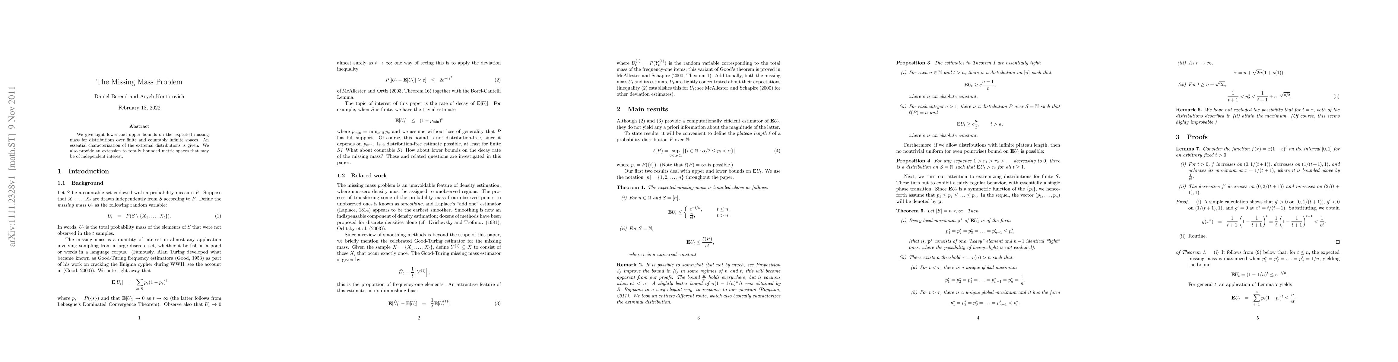 We give tight lower and upper bounds on the expected missing mass for distributions over finite and countably infinite spaces. An essential characterization of the extremal distributions is given. We also provide an extension to totally bounded metric spaces that may be of independent interest.