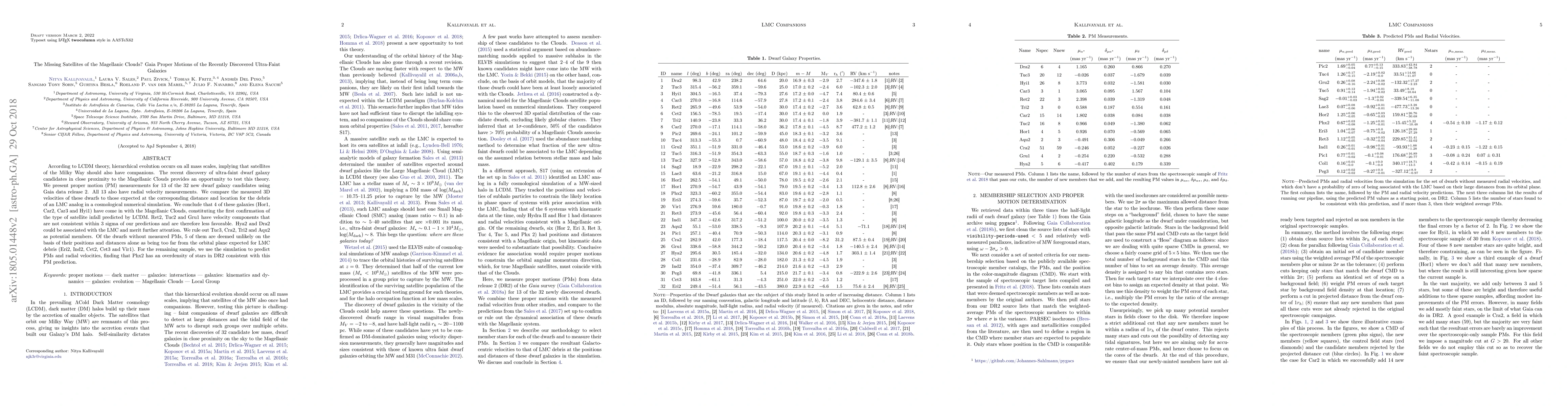 According to LCDM theory, hierarchical evolution occurs on all mass scales, implying that satellites of the Milky Way should also have companions. The recent discovery of ultra-faint dwarf galaxy candidates in close proximity to the Magellanic Clouds provides an opportunity to test this theory. We present proper motion (PM) measurements for 13 of the 32 new dwarf galaxy candidates using Gaia data release 2. All 13 also have radial velocity measurements. We compare the measured 3D velocities of these dwarfs to those expected at the corresponding distance and location for the debris of an LMC analog in a cosmological numerical simulation. We conclude that 4 of these galaxies (Hor1, Car2, Car3 and Hyi1) have come in with the Magellanic Clouds, constituting the first confirmation of the type of satellite infall predicted by LCDM. Ret2, Tuc2 and Gru1 have velocity components that are not consistent within 3 sigma of our predictions and are therefore less favorable. Hya2 and Dra2 could be associated with the LMC and merit further attention. We rule out Tuc3, Cra2, Tri2 and Aqu2 as potential members. Of the dwarfs without measured PMs, 5 of them are deemed unlikely on the basis of their positions and distances alone as being too far from the orbital plane expected for LMC debris (Eri2, Ind2, Cet2, Cet3 and Vir1). For the remaining sample, we use the simulation to predict PMs and radial velocities, finding that Phx2 has an overdensity of stars in DR2 consistent with this PM prediction.