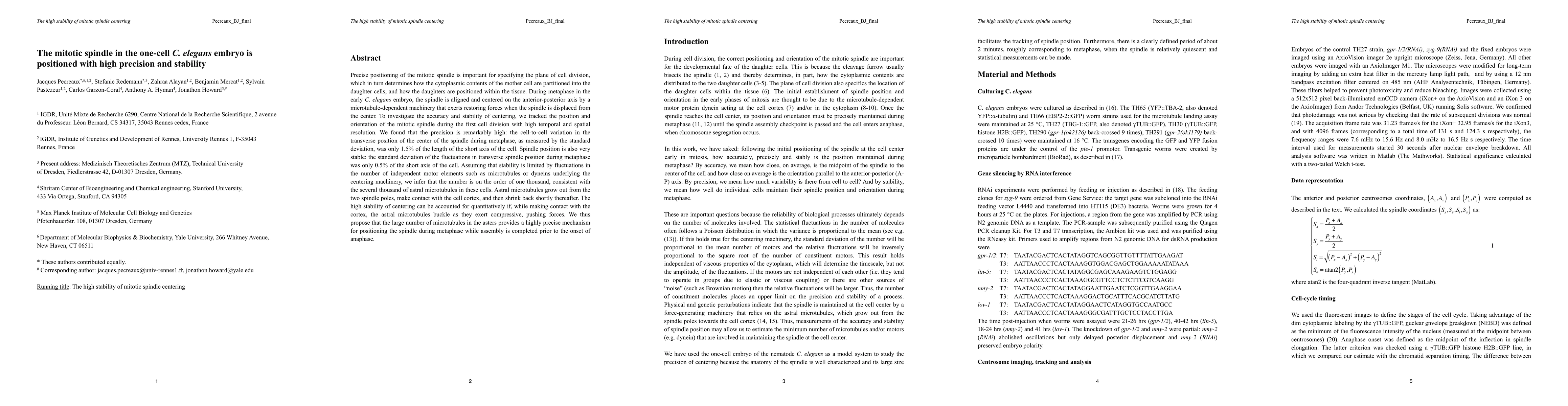 This study highlights the high precision and stability of mitotic spindle positioning in C. elegans embryos, which is crucial for proper cell division and tissue organization, with implications for understanding similar processes in other organisms.